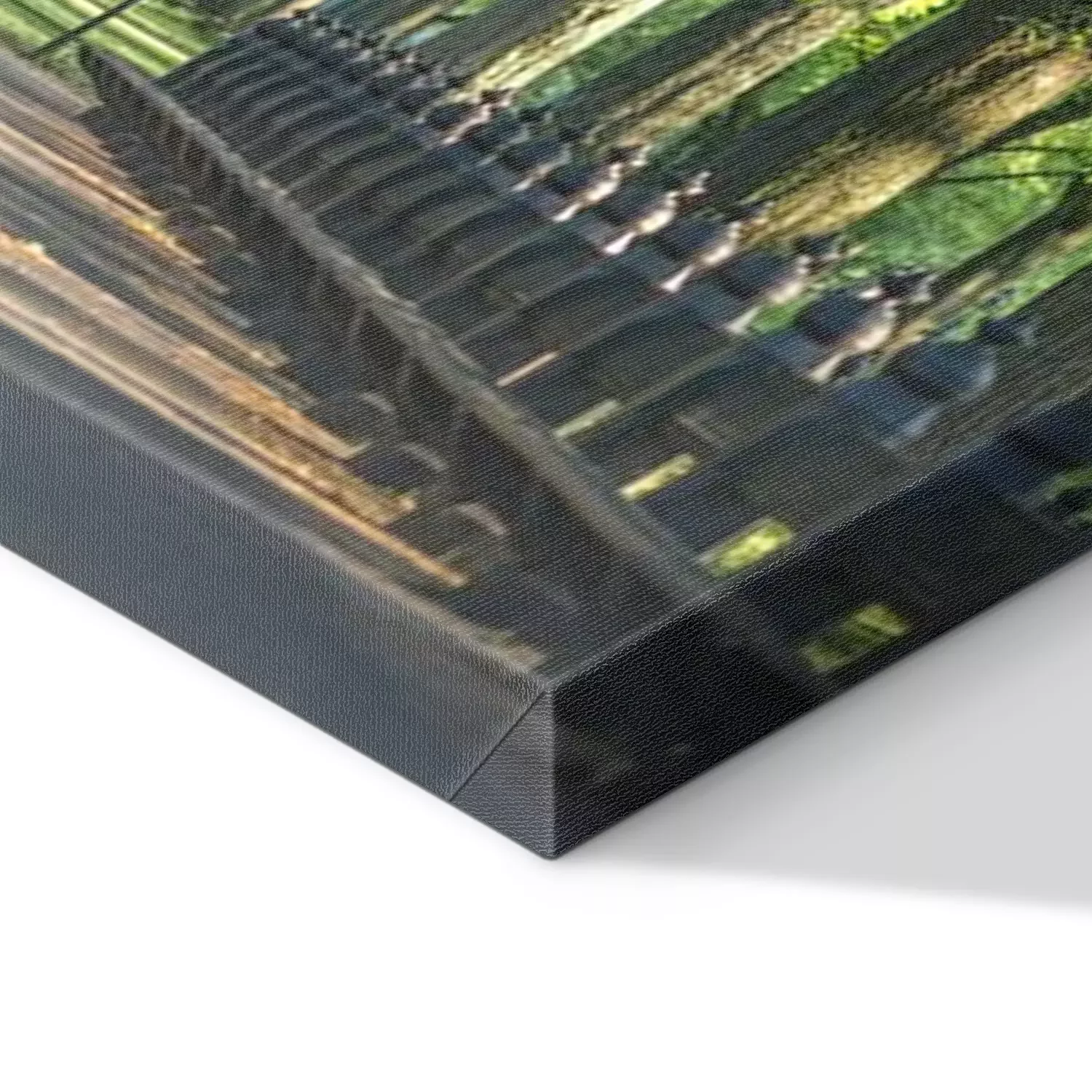 Das Motiv wird auf eine qualitativ hochwertige Leinwand gedruckt, die auf einen Blendrahmen gezogen wird. Da der Aufdruck die Seitenkanten bedeckt, muss das Bild nicht zusätzlich eingerahmt werden. Wir empfehlen außerdem Kompositionen aus mehreren Bildern, die ein harmonisches Ganzes bilden.