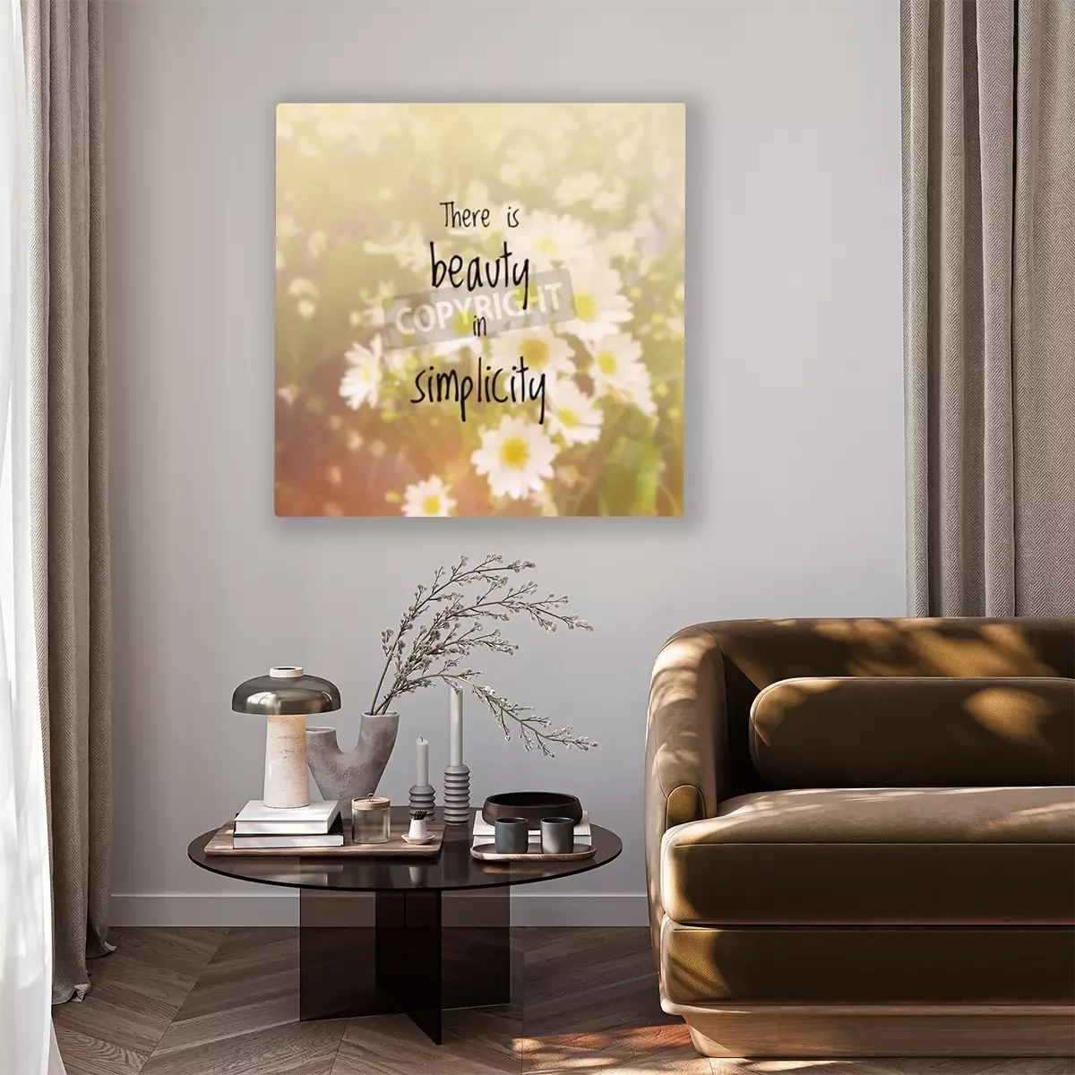 Bild: Zitat über Einfachheit vor dem Hintergrund der Blumen