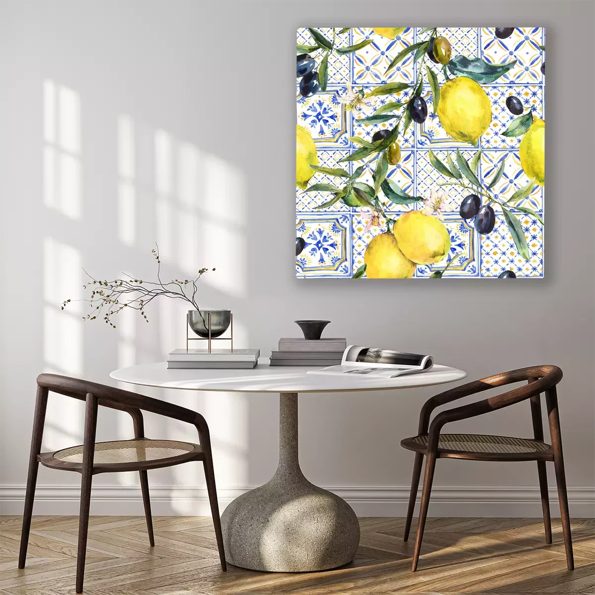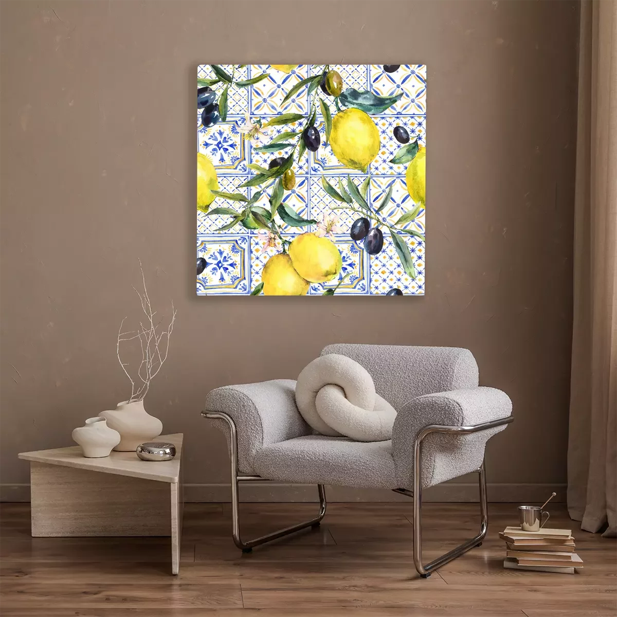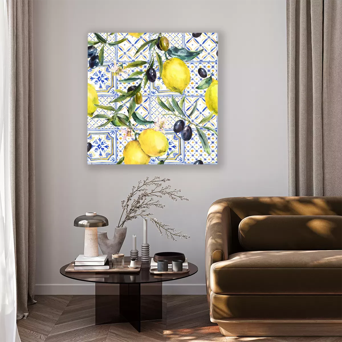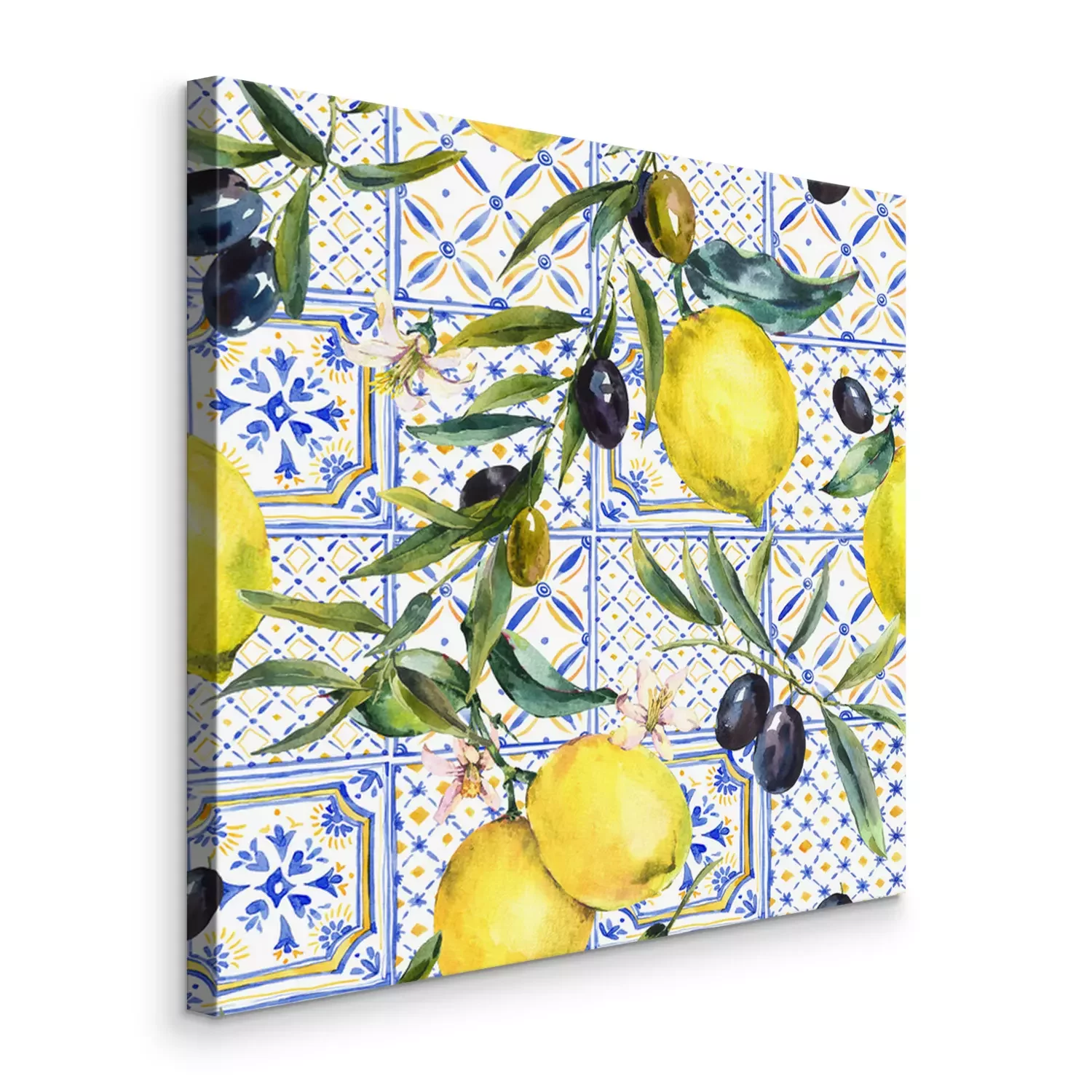 Bild: Zitronen auf einem Hintergrund aus blauen Kacheln