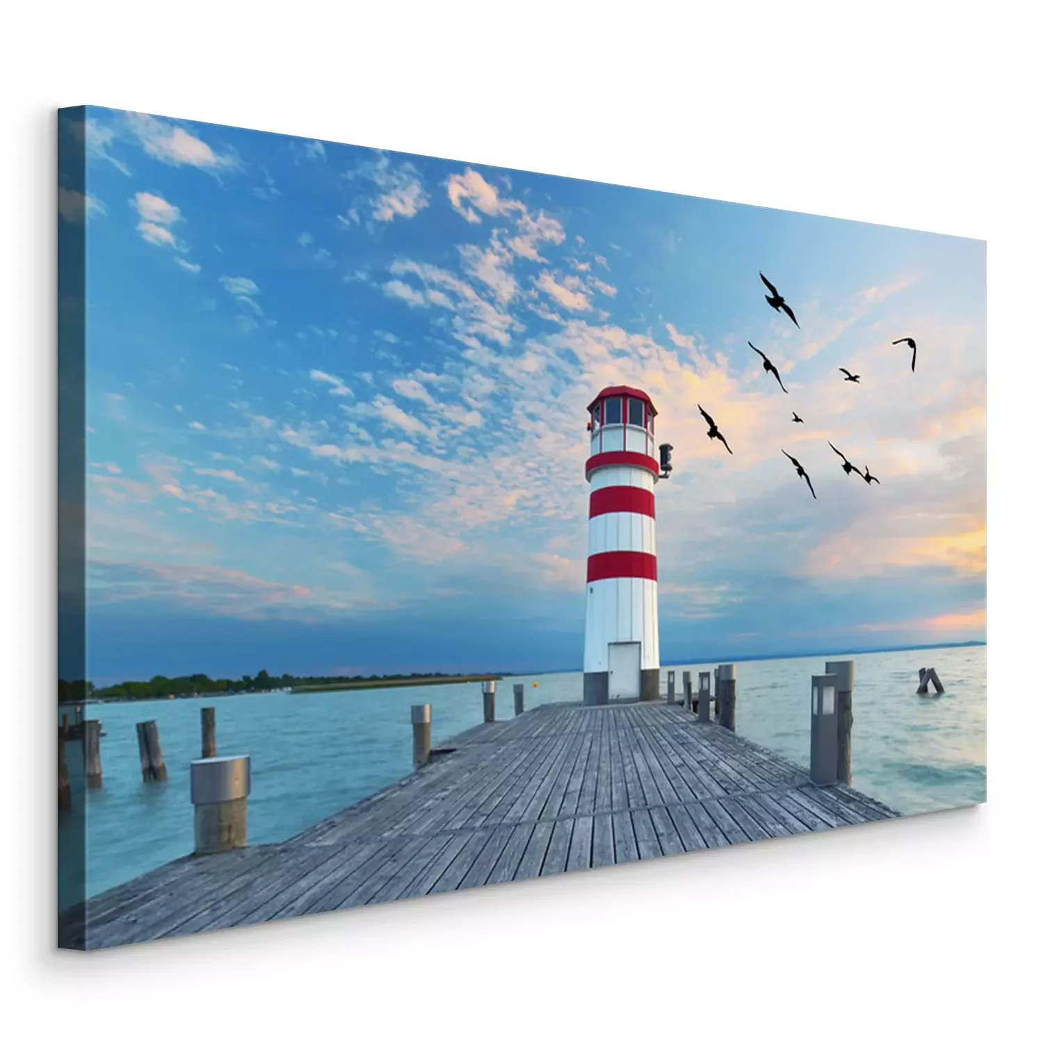 Bild Zum Sonnenuntergang am Leuchtturm am See