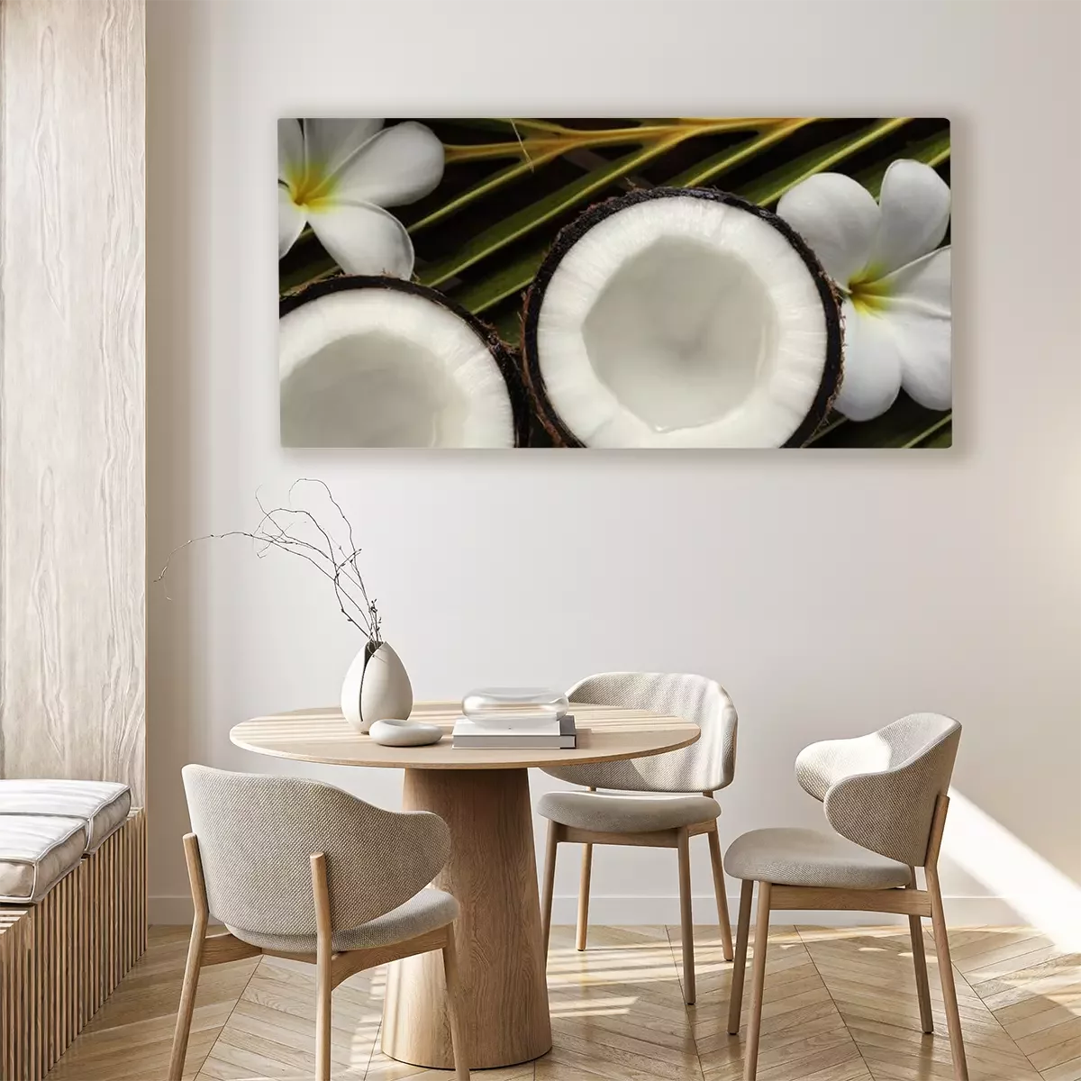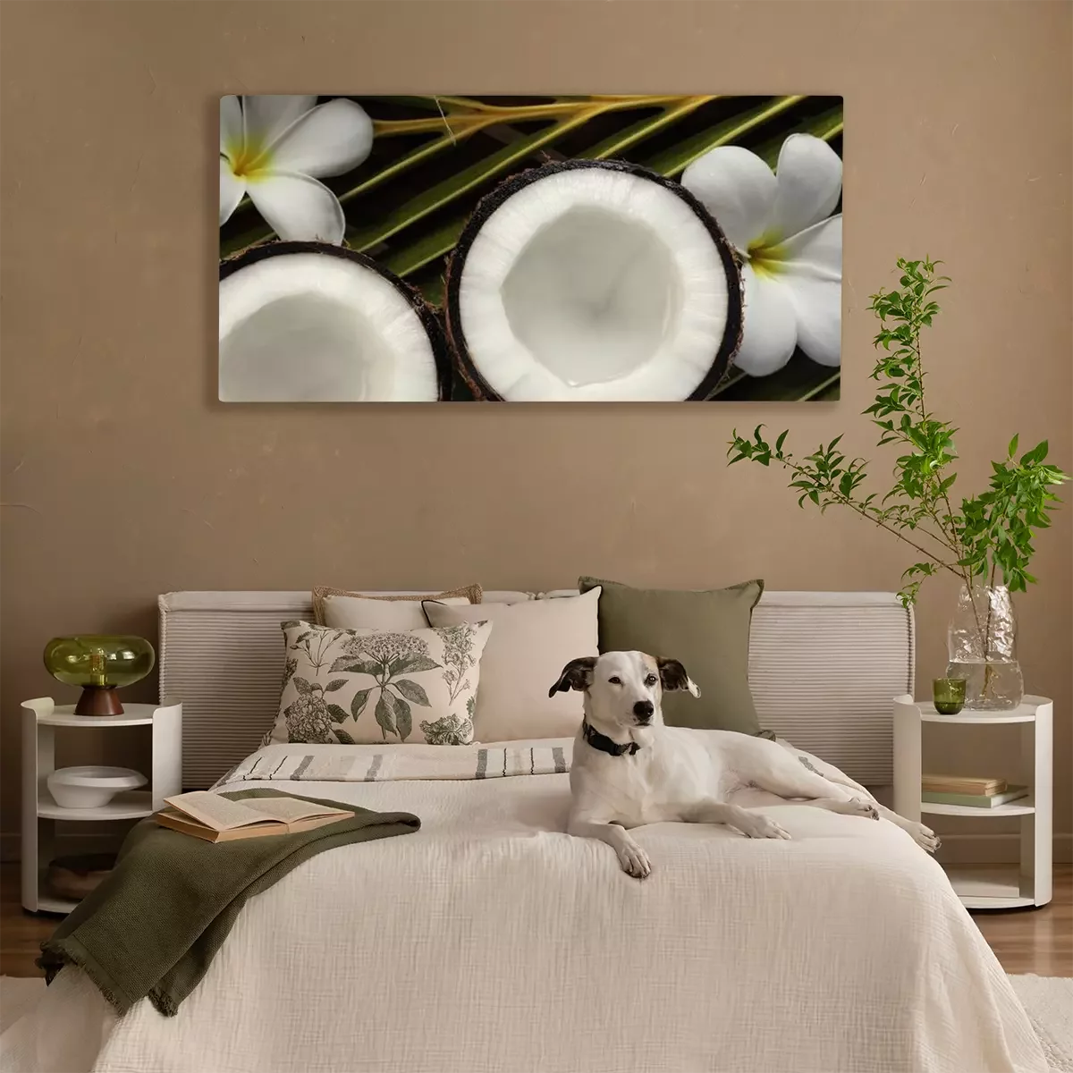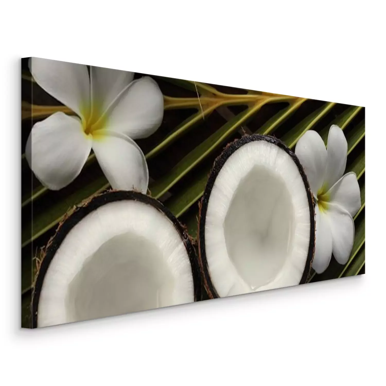 Bild Zwei Hälften Kokosnuss und Orchidee