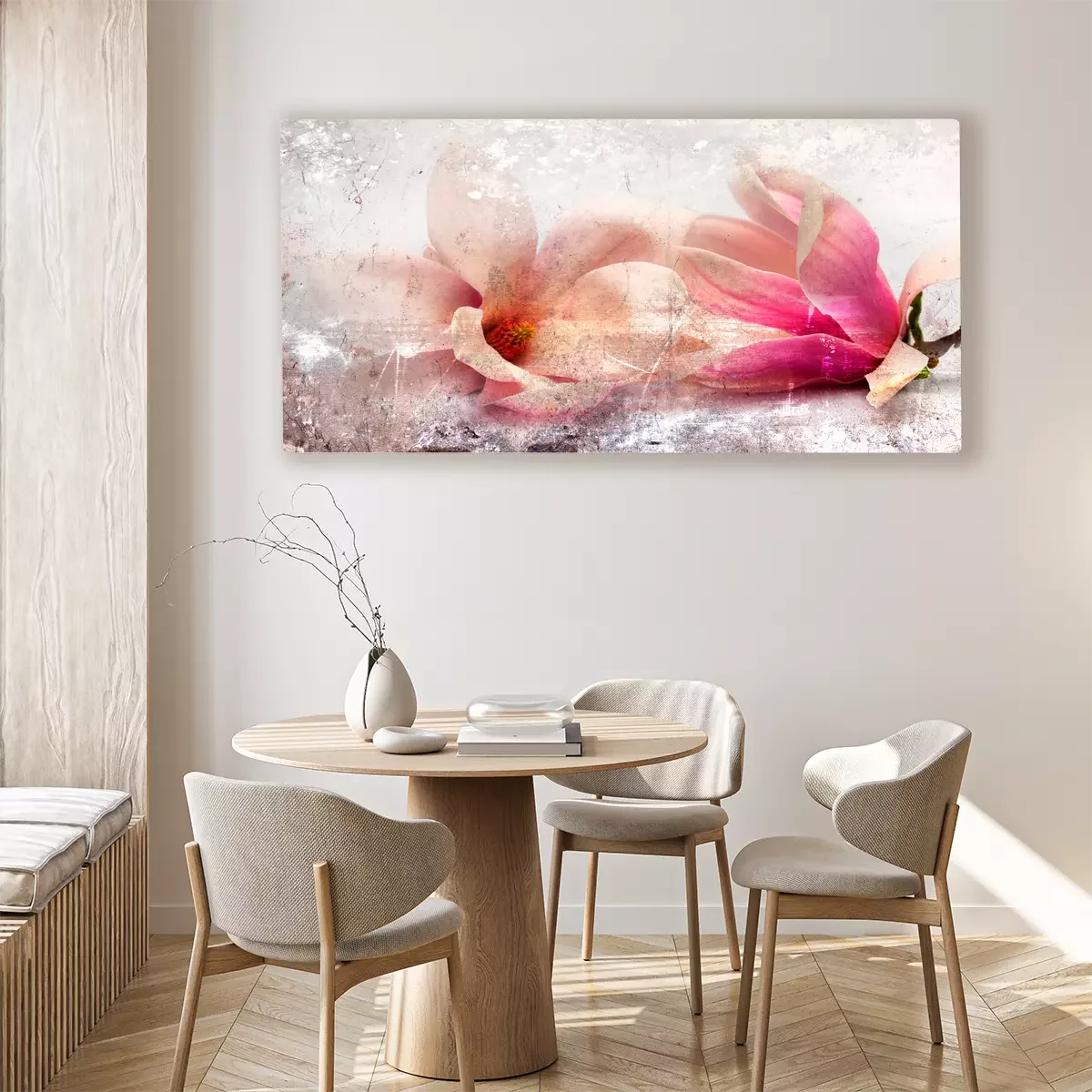 Zwei liegende magnolienblüten in rosatönen