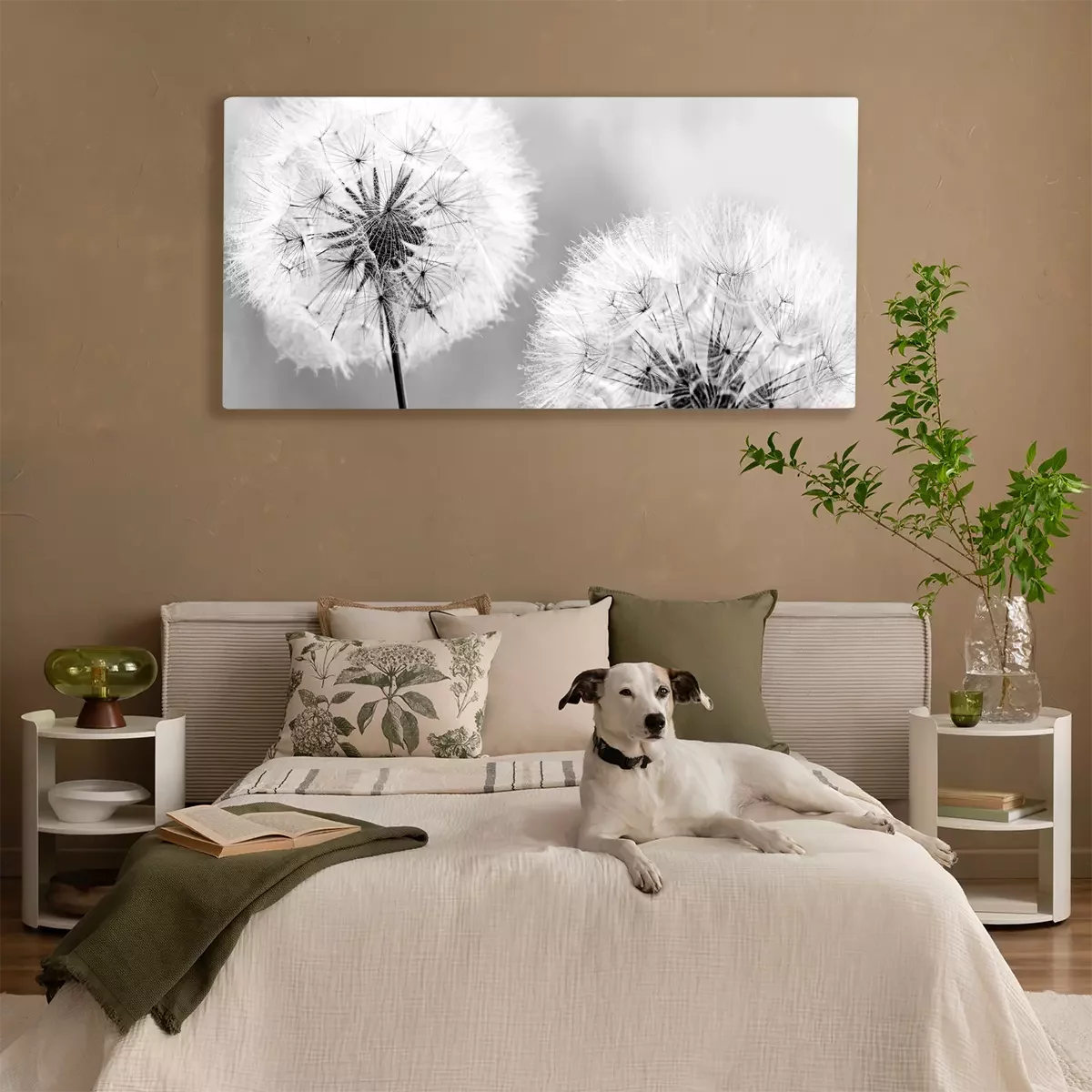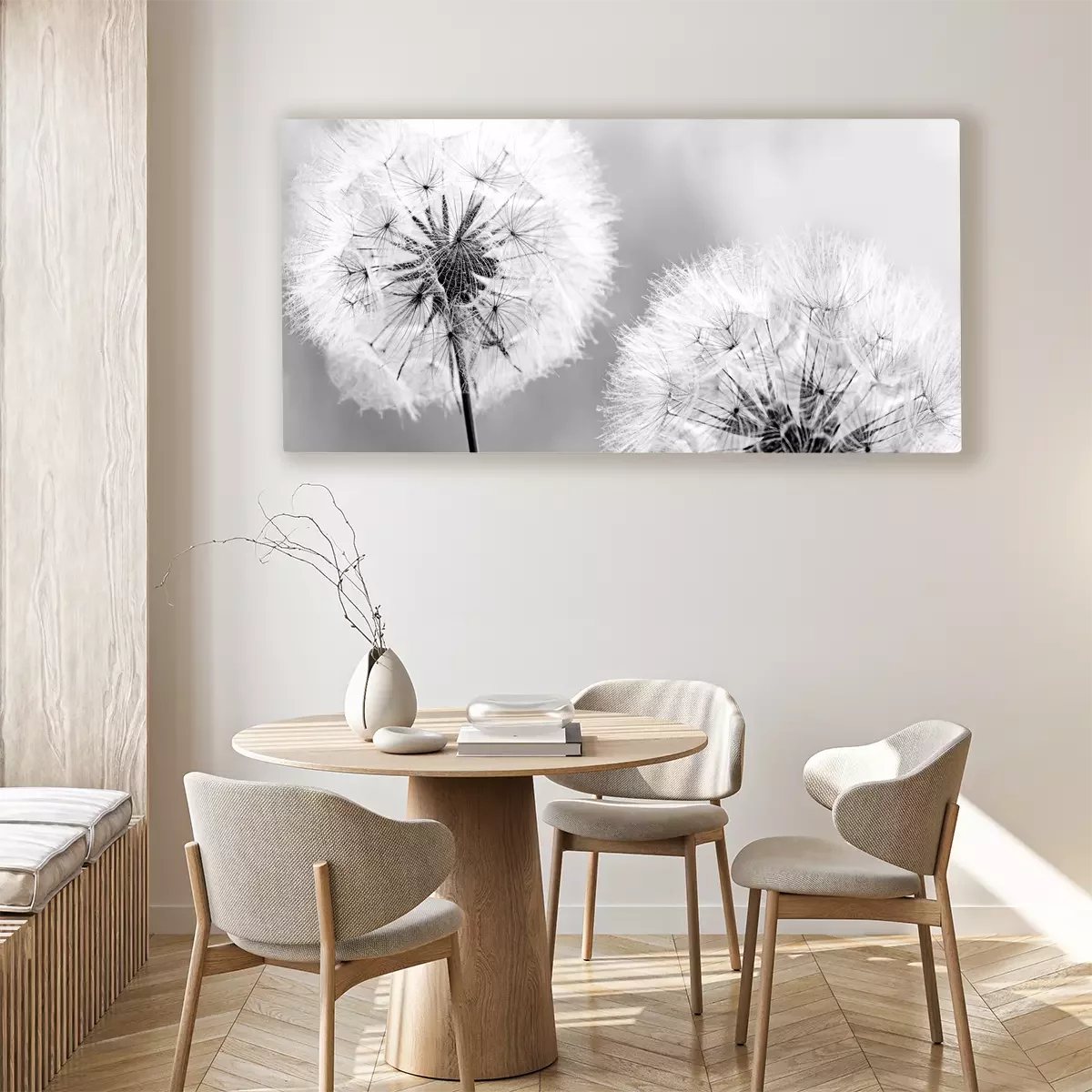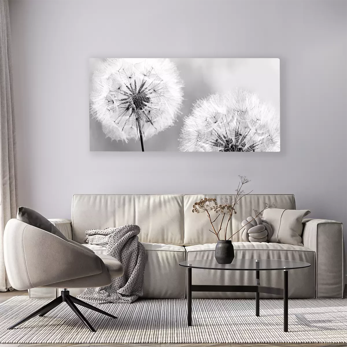 Zwei löwenzahnblüten in einer schwarzweißaufnahme