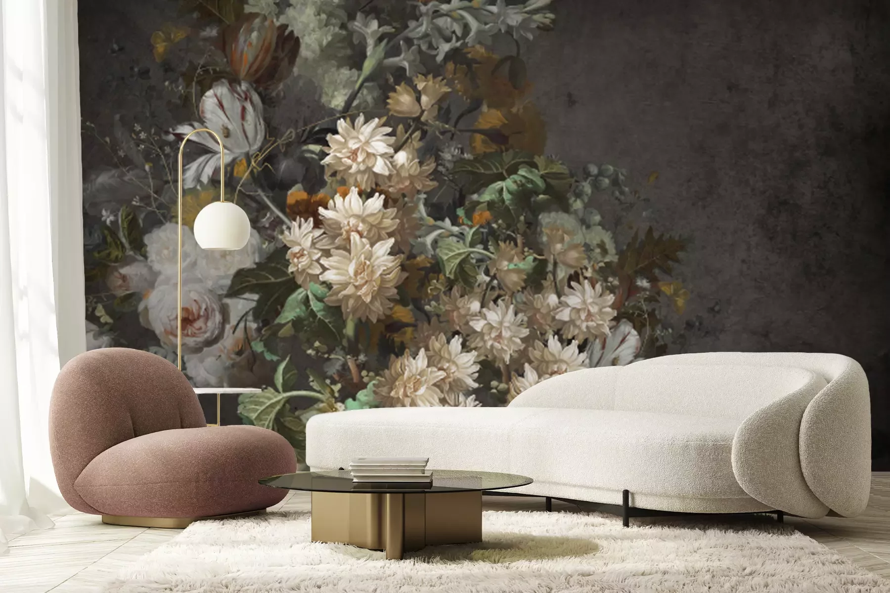 3d-blumenstrauß auf dunklem hintergrund, florales muster