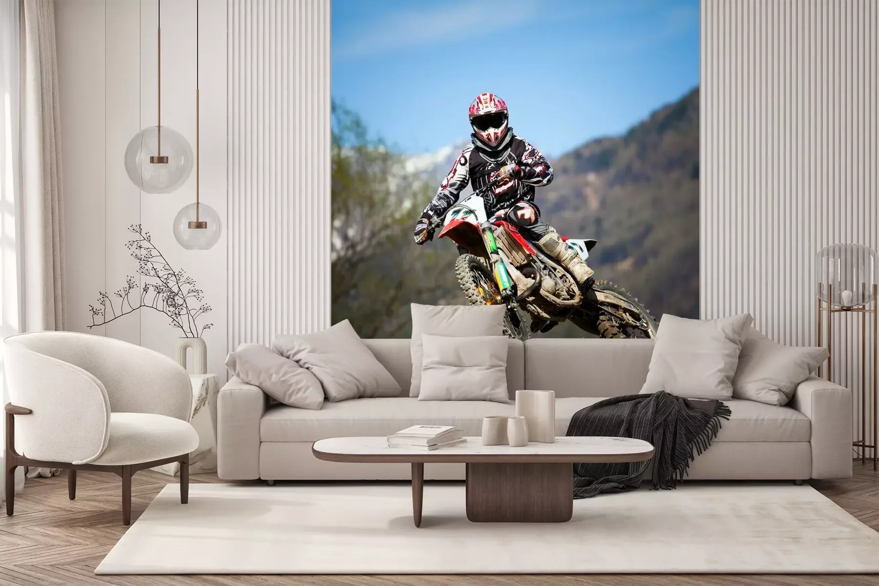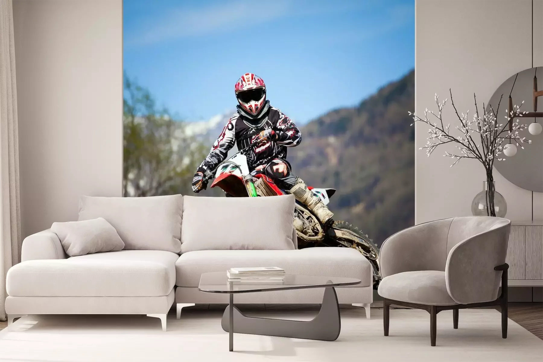 Geländemotorrad und NaturlandschaftFototapete