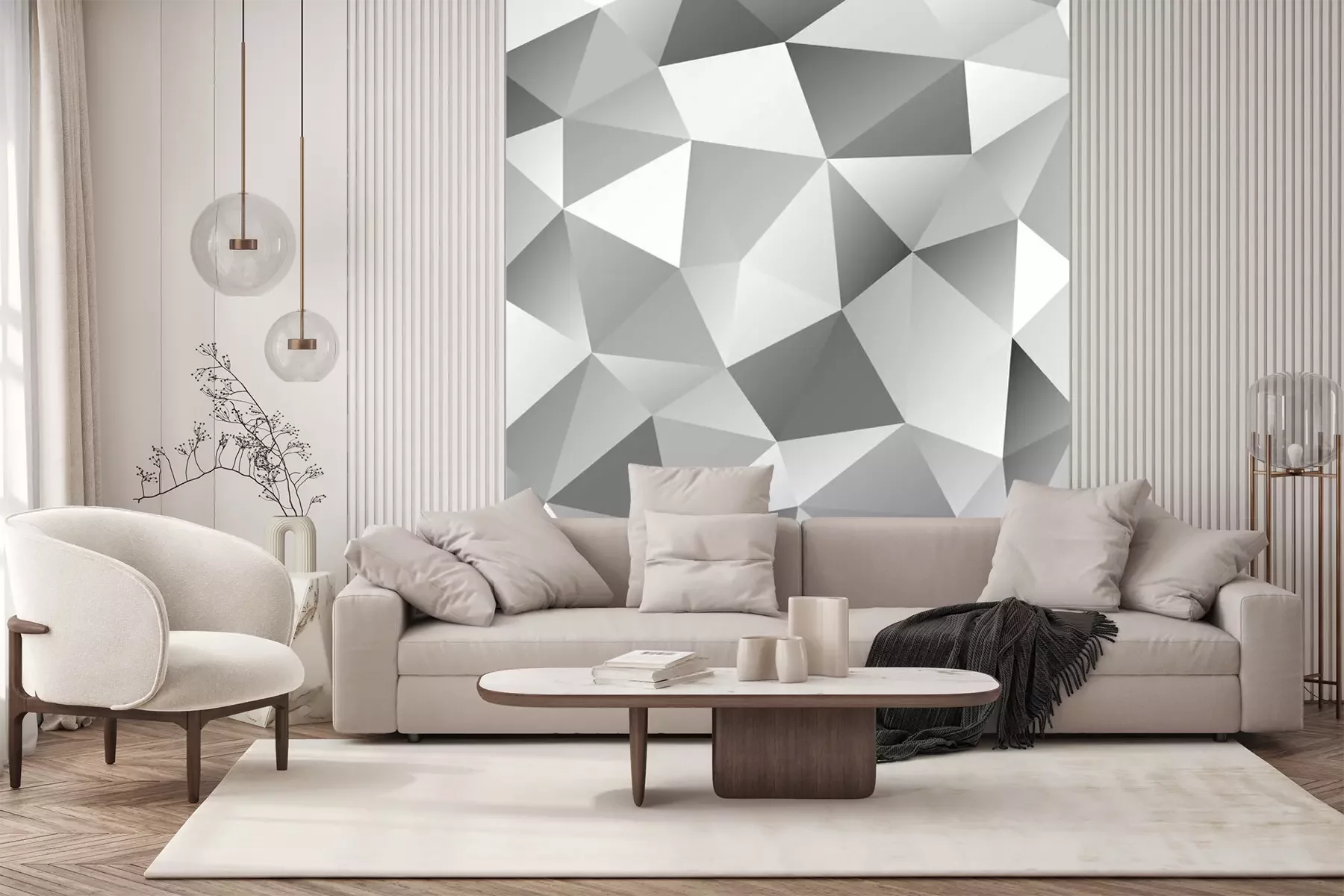 Die Fototapeten werden in Bahnen geliefert. Die Größe und die Anzahl der Bahnen, aus denen die gesamte Fototapete besteht, hängen vom gewählten Material ab. Wenn die Größe die maximale Breite des Materials überschreitet, besteht der Ausdruck aus mehreren gleich großen Bahnen.