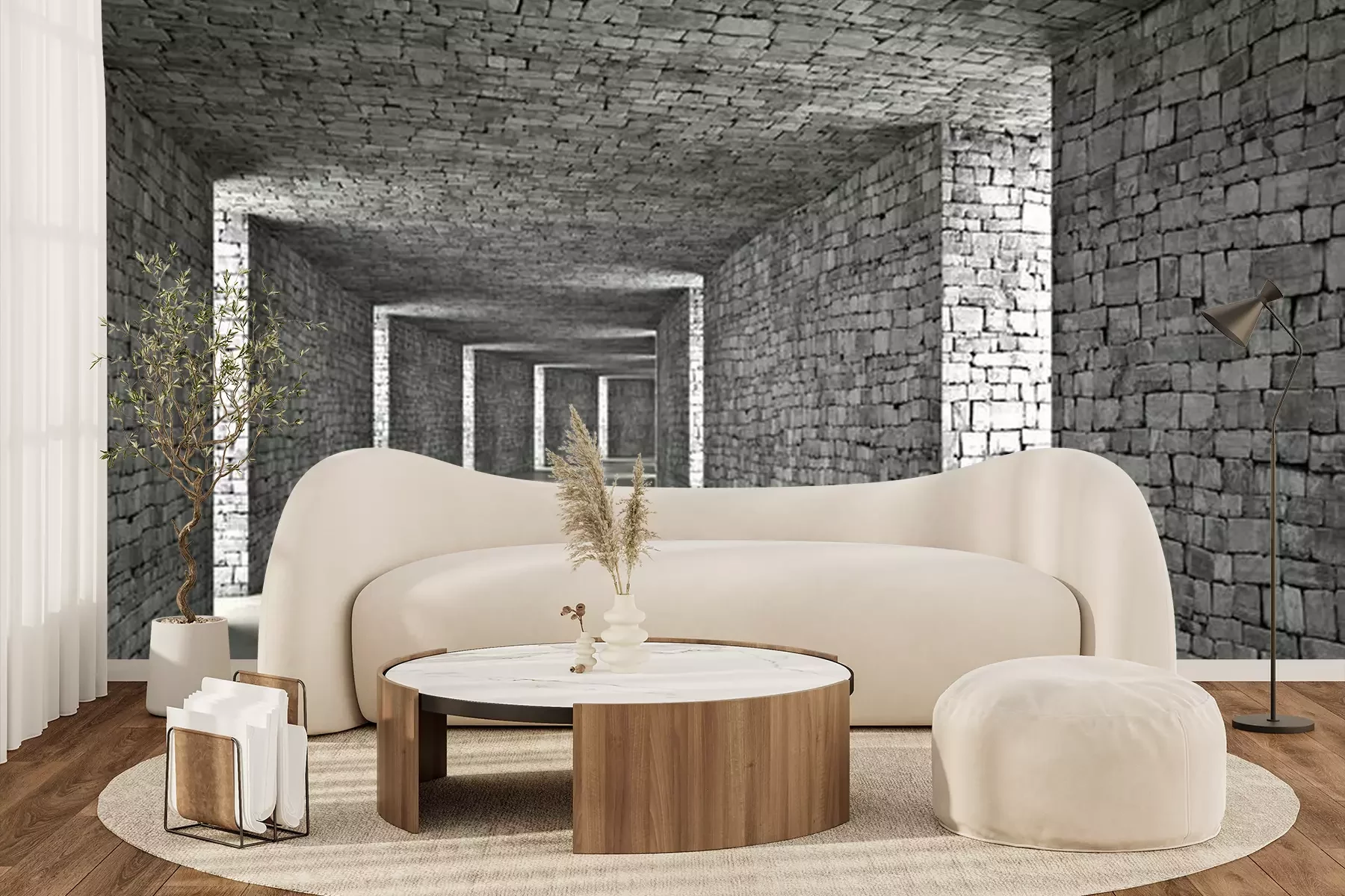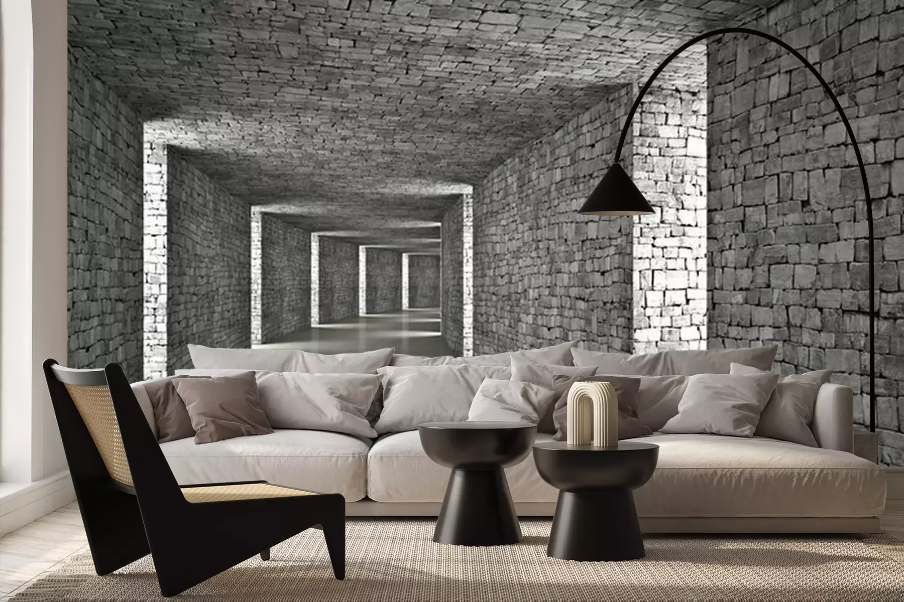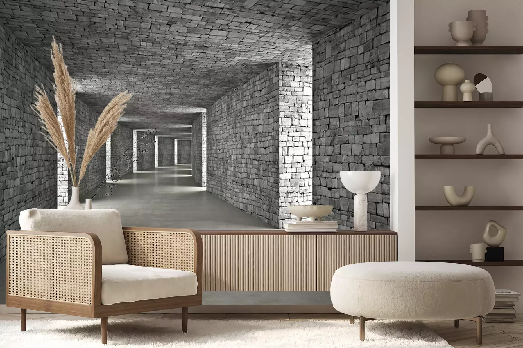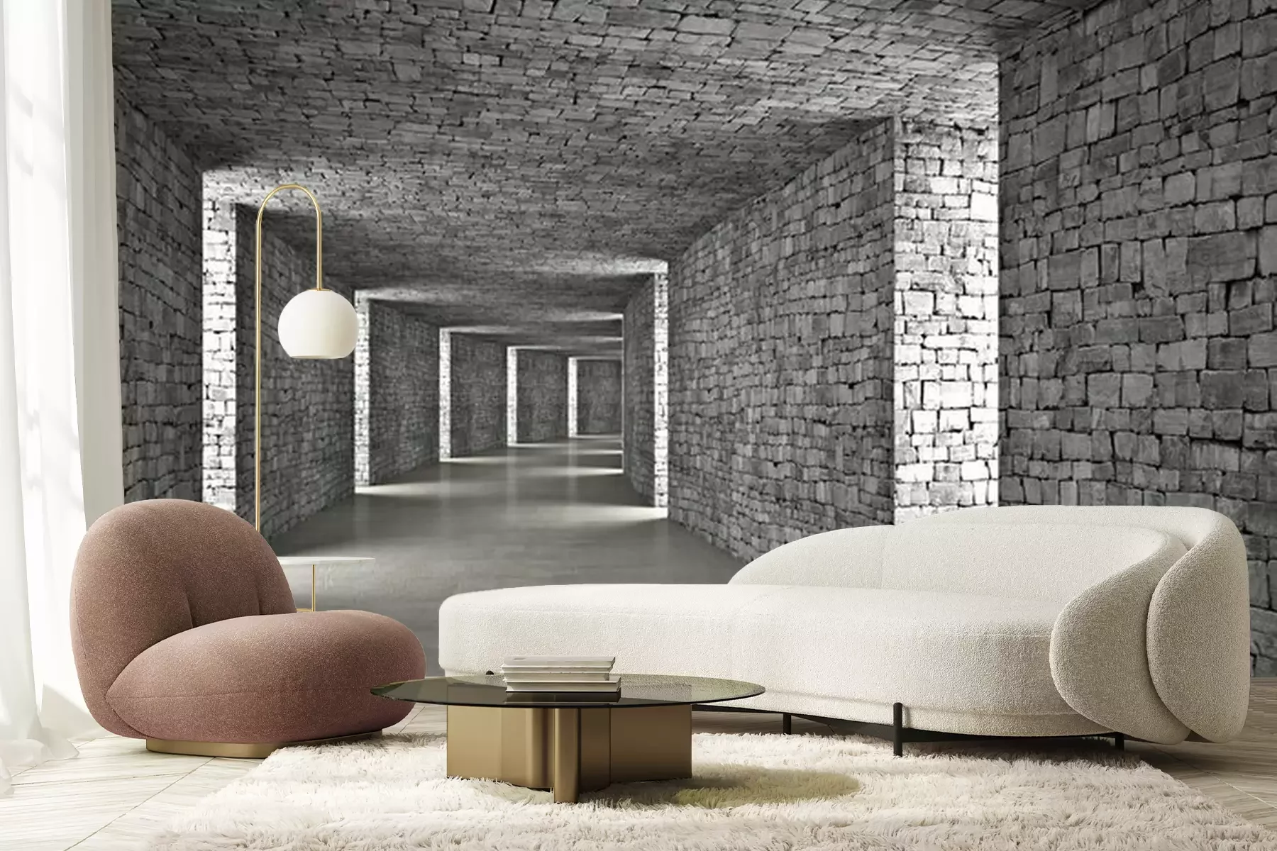 Steintunnel mit 3D-LöchernFototapete