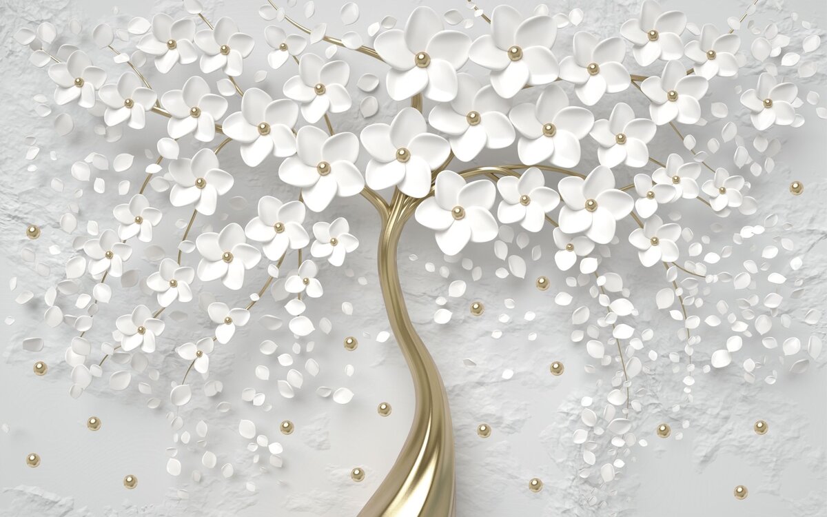 Fototapete: 3D-Komposition mit weißen Blüten auf einem Baum