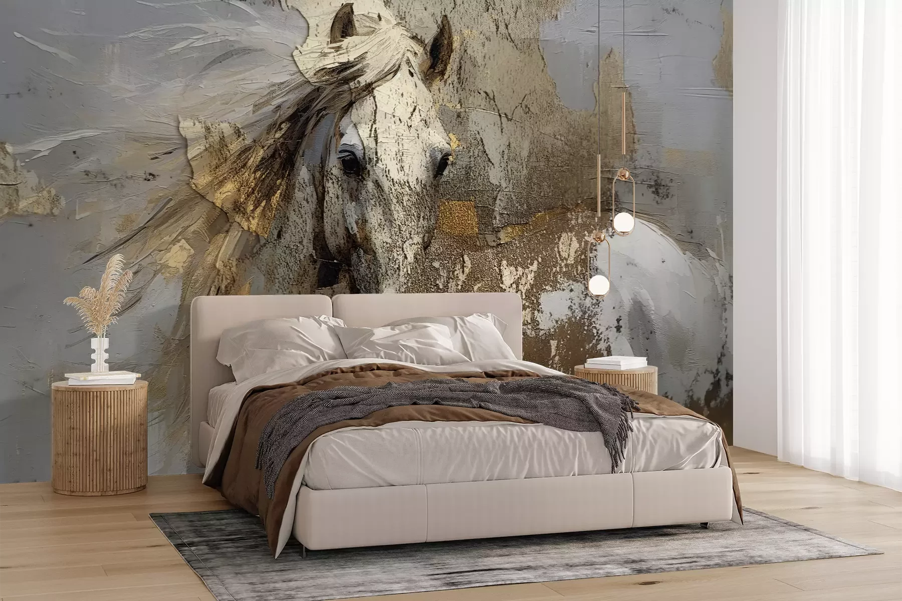 Die Fototapeten werden in Bahnen geliefert. Die Größe und die Anzahl der Bahnen, aus denen die gesamte Fototapete besteht, hängen vom gewählten Material ab. Wenn die Größe die maximale Breite des Materials überschreitet, besteht der Ausdruck aus mehreren gleich großen Bahnen.
