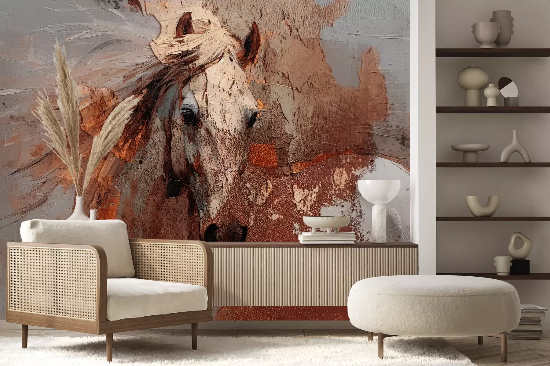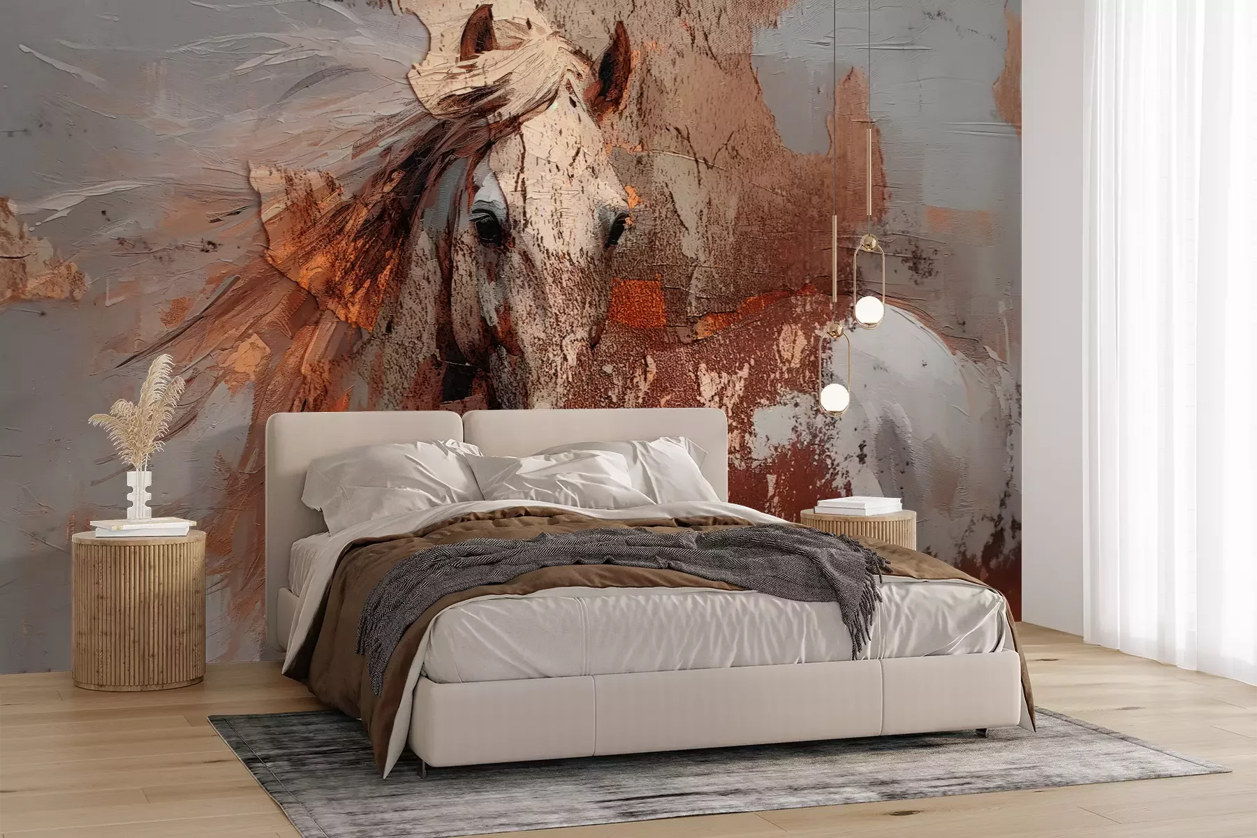 Das Material Premium+ besteht aus einer strukturierten Vinyl-Oberschicht und einem Trägermaterial (Vlies) mit einer Grammatur von 255 g/m², das kleine Unebenheiten der Wand zuverlässig kaschiert. Die feine Sandstruktur verleiht der Oberfläche eine luxuriöse Haptik, während das halbmatte Finish die Tiefe der Farben betont. Das Material ist dampfdurchlässig – so kann diese Fototapete auch in Küchen und Badezimmern eingesetzt werden. Die maximale Breite einer Tapetenbahn beträgt 100 cm. Bei größeren Abmessungen besteht die Fototapete aus mehreren gleich großen Bahnen. Der Kleber wird direkt auf die Wand aufgetragen, und die Fototapete wird auf Stoß angebracht, was für einen ästhetischen Effekt ohne sichtbare Fugen sorgt. Die Oberfläche ist pflegeleicht und kann bei Bedarf sanft mit einem feuchten Tuch abgewischt werden.