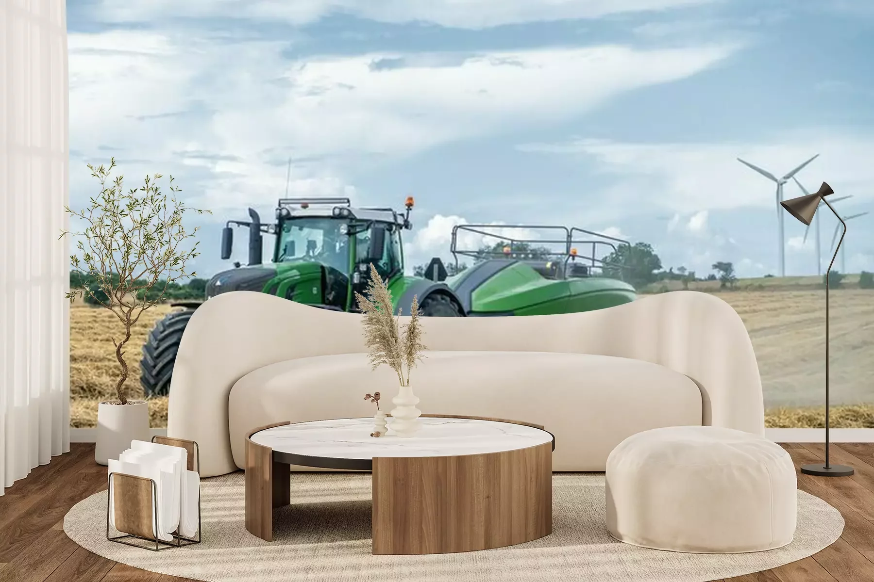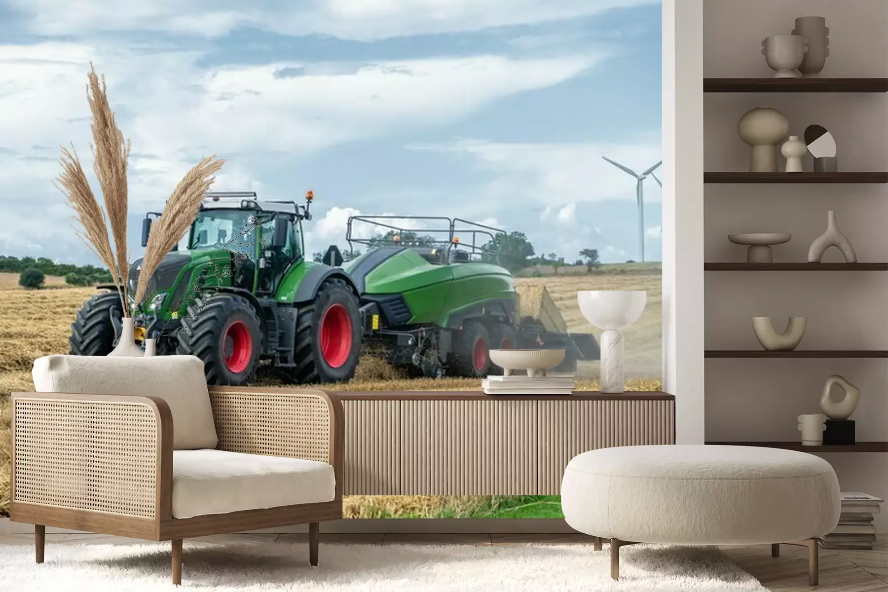 Fototapete 3D-Traktor bei der Arbeit auf dem Feld