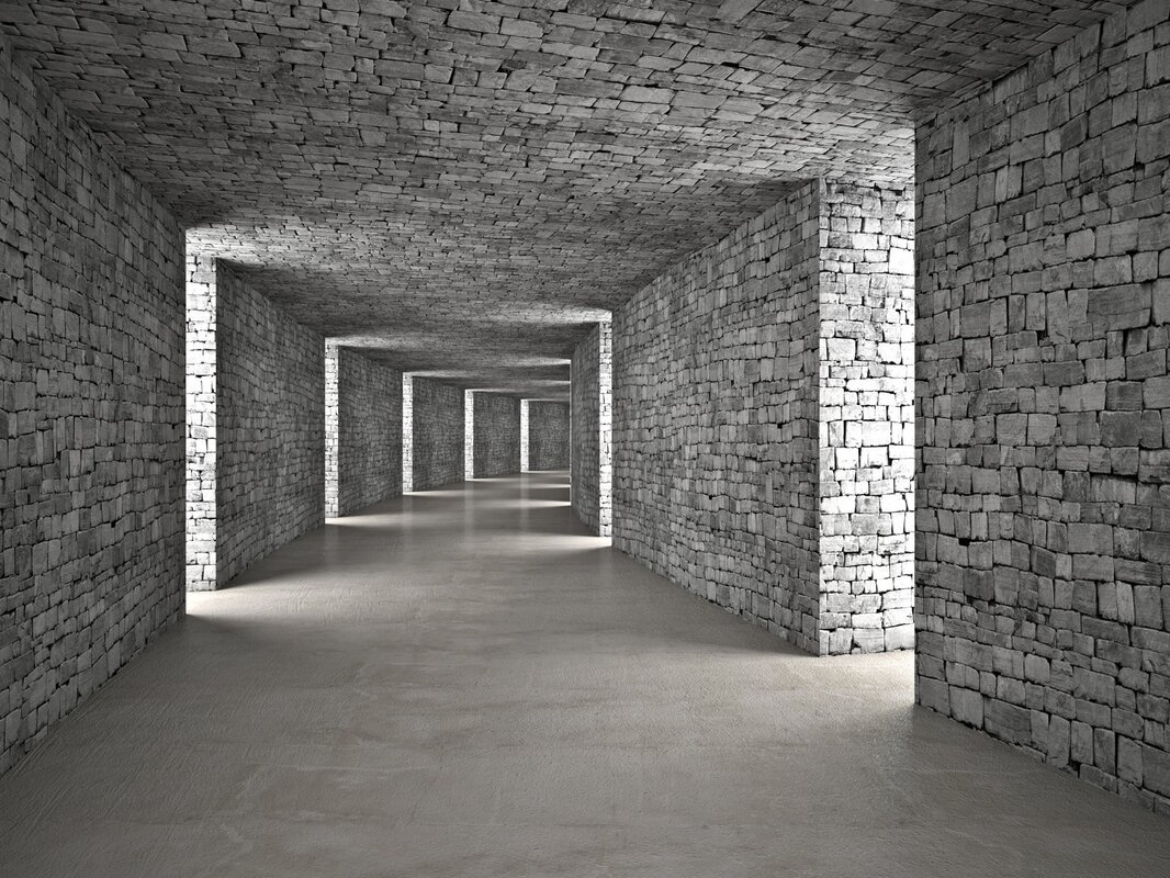 Fototapete: 3D-Tunnel aus grauen Ziegeln