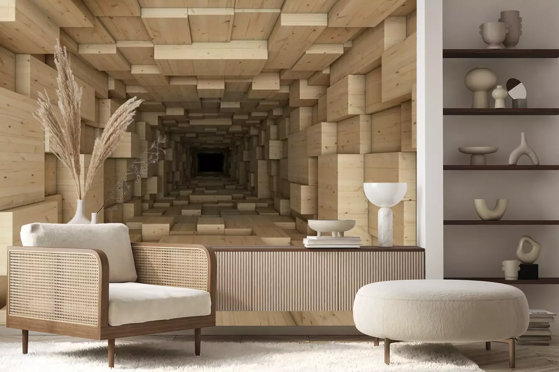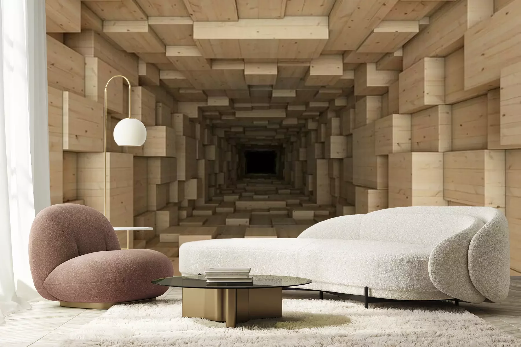 3D-HolztunnelFototapete