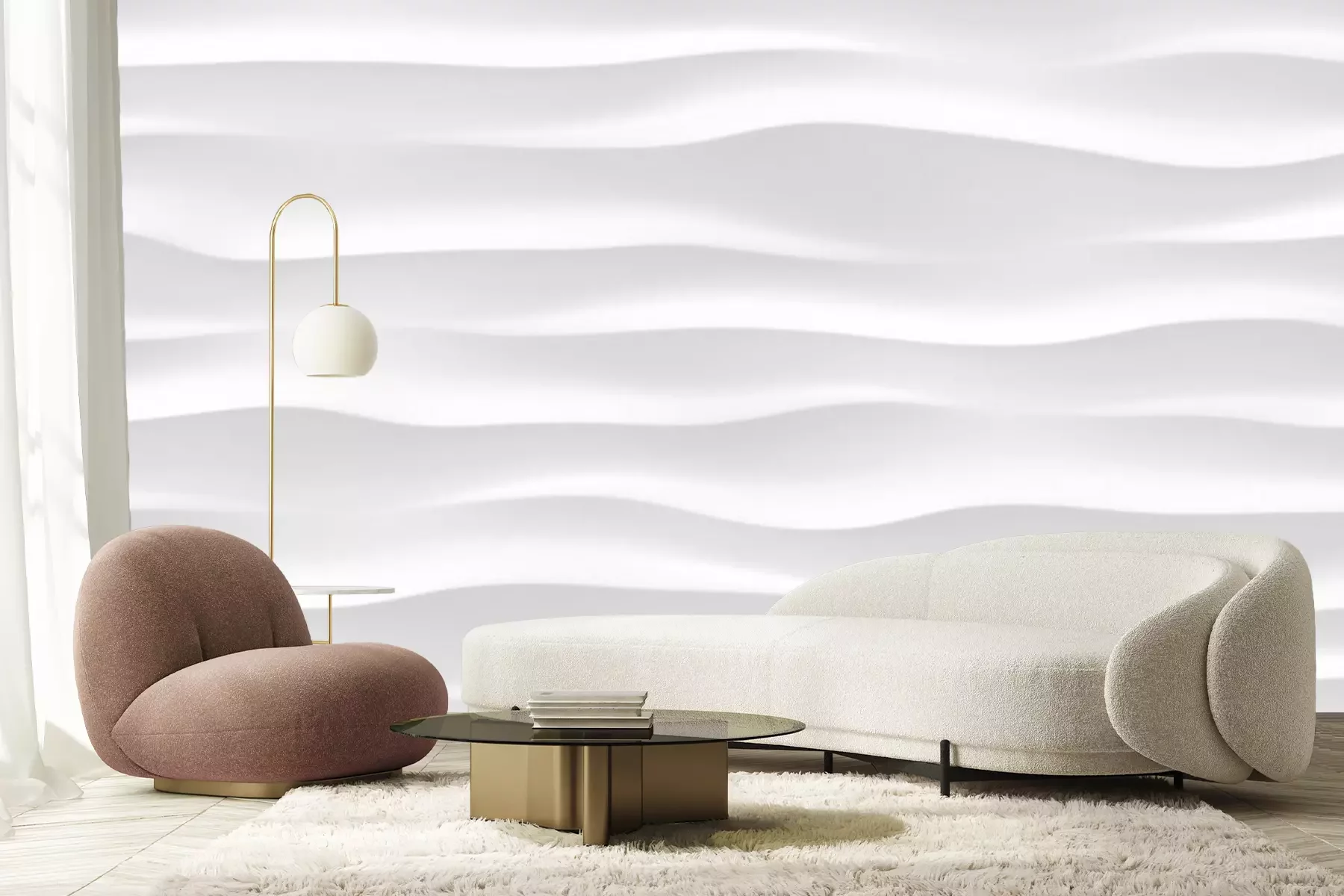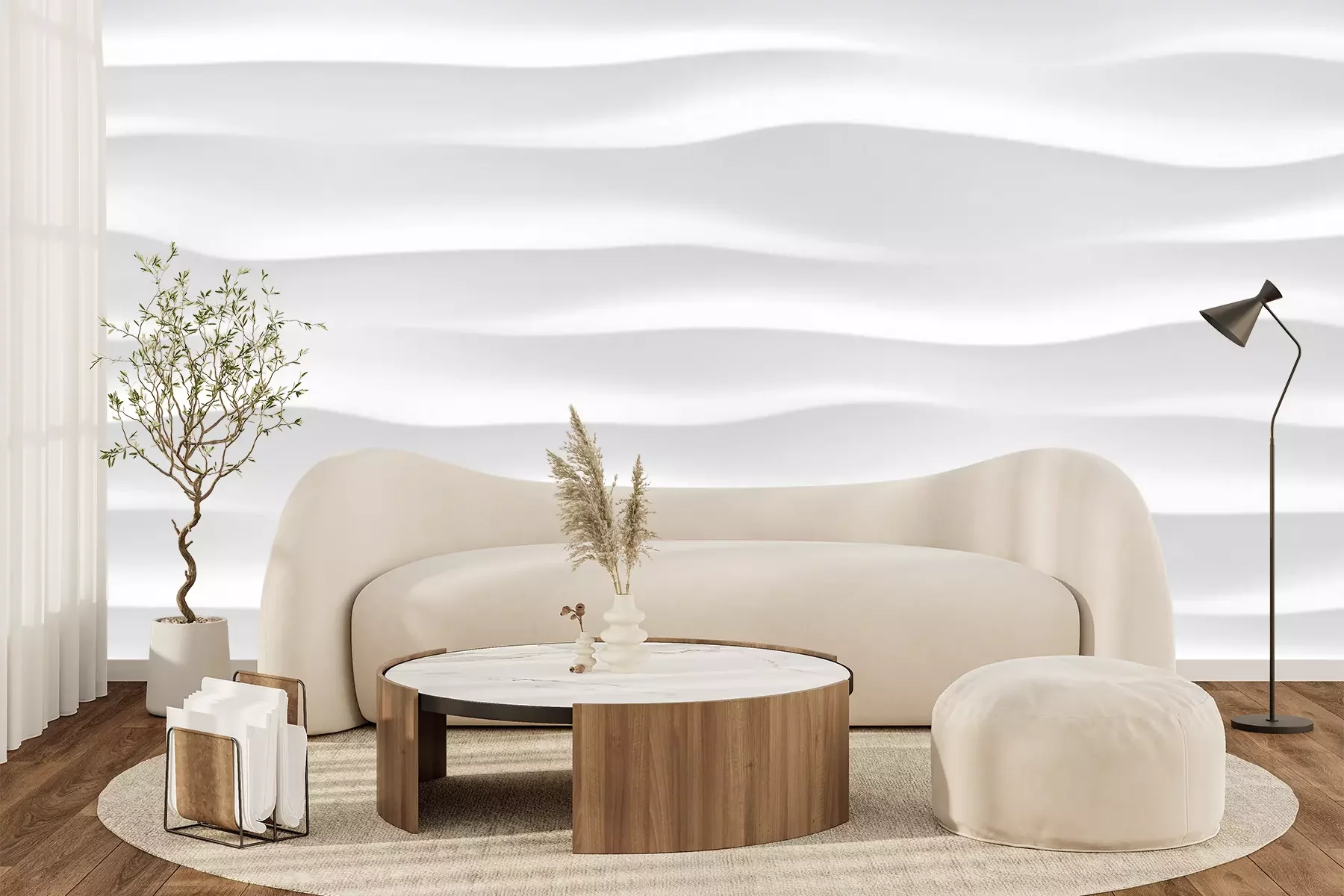 Fototapete 3D-Wellen weiße Textur