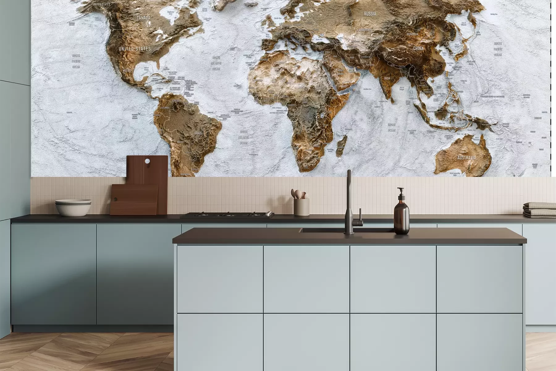 Das Material Premium+ besteht aus einer strukturierten Vinyl-Oberschicht und einem Trägermaterial (Vlies) mit einer Grammatur von 255 g/m², das kleine Unebenheiten der Wand zuverlässig kaschiert. Die feine Sandstruktur verleiht der Oberfläche eine luxuriöse Haptik, während das halbmatte Finish die Tiefe der Farben betont. Das Material ist dampfdurchlässig – so kann diese Fototapete auch in Küchen und Badezimmern eingesetzt werden. Die maximale Breite einer Tapetenbahn beträgt 100 cm. Bei größeren Abmessungen besteht die Fototapete aus mehreren gleich großen Bahnen. Der Kleber wird direkt auf die Wand aufgetragen, und die Fototapete wird auf Stoß angebracht, was für einen ästhetischen Effekt ohne sichtbare Fugen sorgt. Die Oberfläche ist pflegeleicht und kann bei Bedarf sanft mit einem feuchten Tuch abgewischt werden.