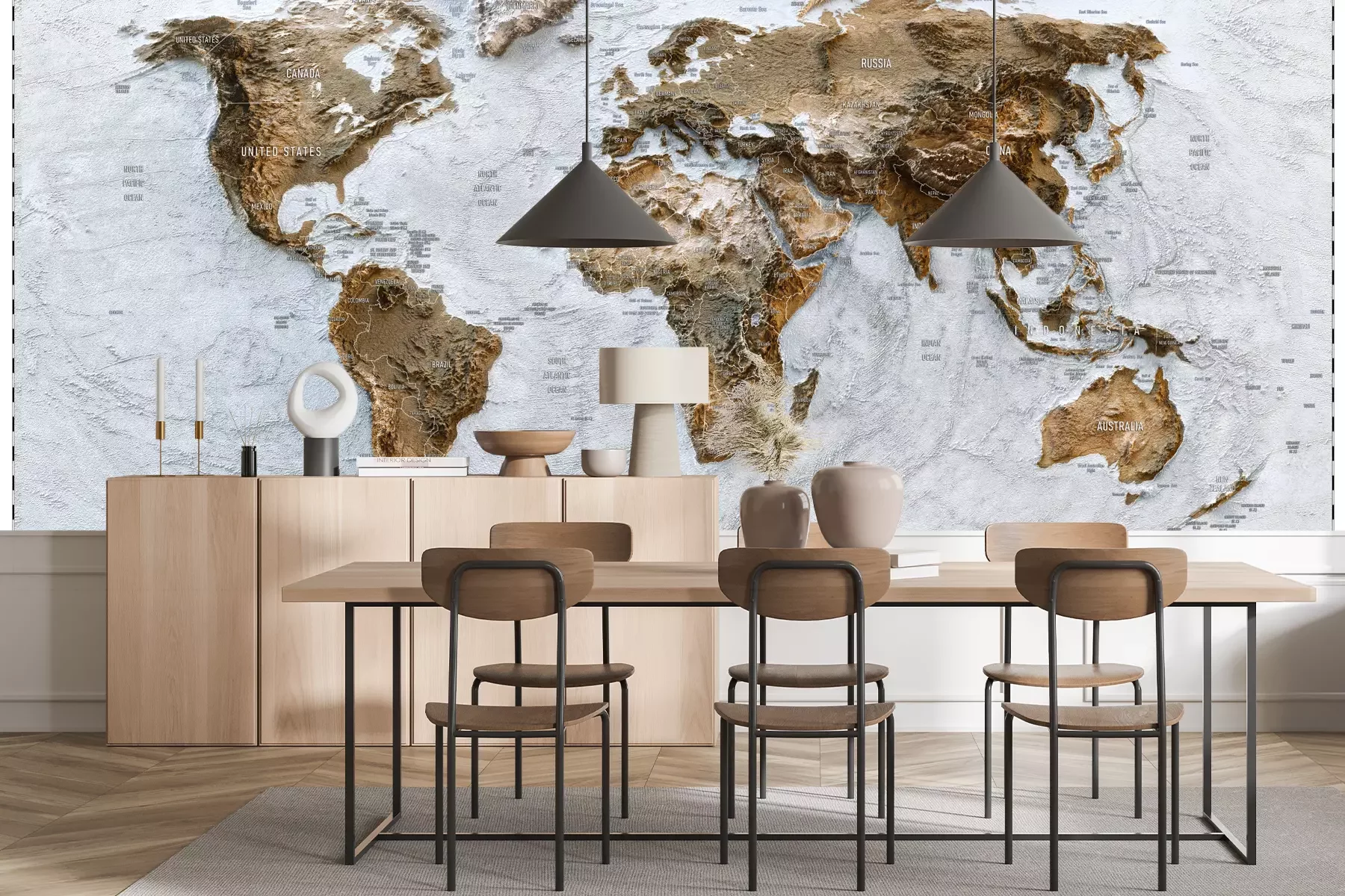 Das Material Standard ist ein hochwertiges Latexmaterial mit einer glatten, matten Oberfläche. Durch den Einsatz von HP-Latex-Drucktechnologie sind die Farben satt, langlebig und UV-beständig. So bleibt das Muster über Jahre hinweg makellos schön. Die verschmutzte Oberfläche dieses Materials kann sanft mit einem trockenen Tuch abgewischt werden. Die maximale Breite einer einzelnen Bahn beträgt 95 cm oder 105 cm – je nach Breite der bestellten Fototapete. Bei Fototapeten mit größeren Abmessungen besteht der Ausdruck aus mehreren gleich großen Tapetenbahnen. Die Fototapete wird auf Stoß angebracht, wodurch die Fugen nahezu unsichtbar sind.