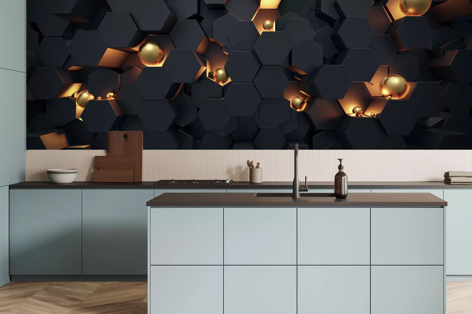 Super schöne Küchentapete, genau nach Maß, passt perfekt.