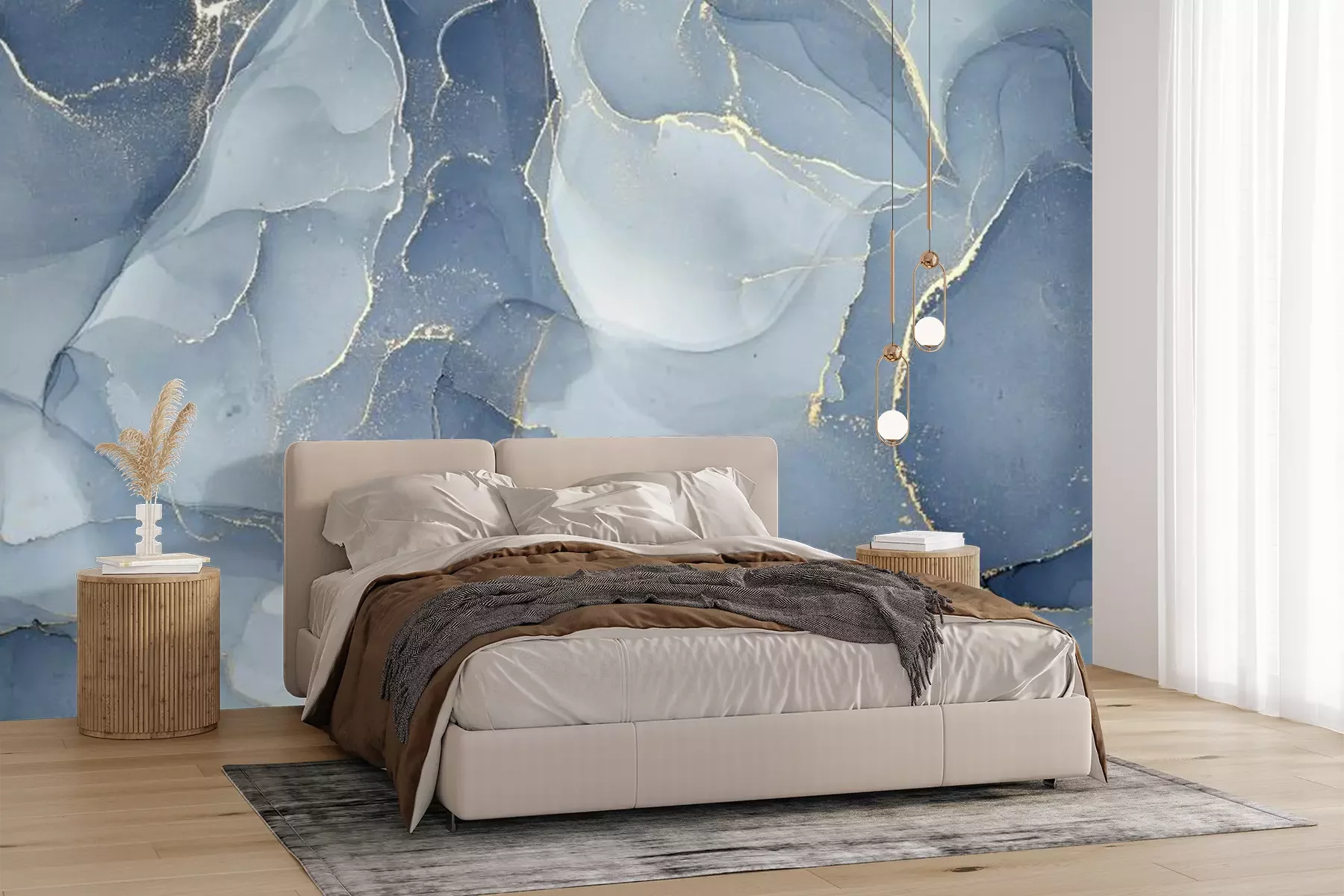 Dunkelblaue Farbtöne durchdringen sichFototapete