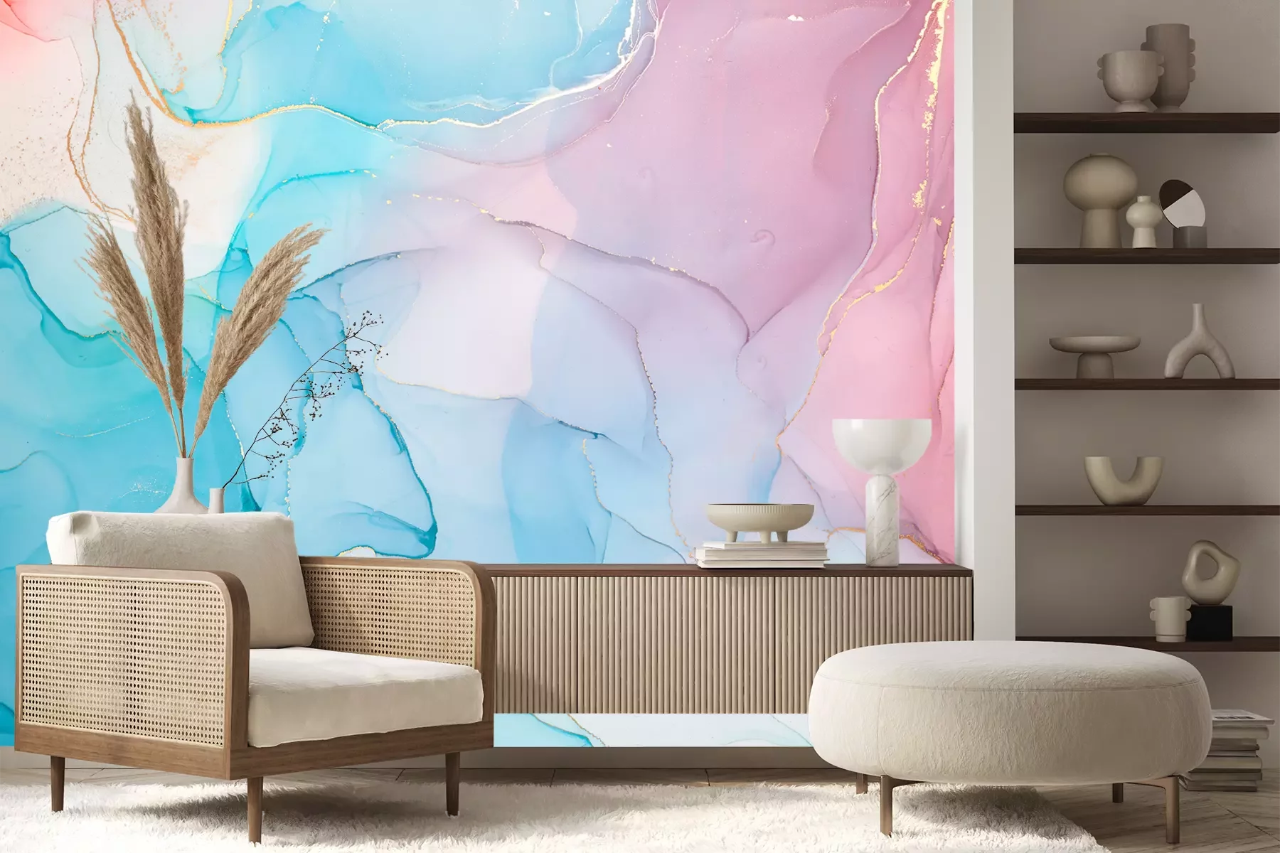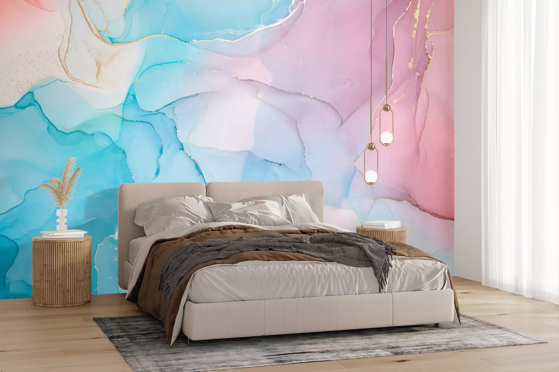 Das Material Premium+ besteht aus einer strukturierten Vinyl-Oberschicht und einem Trägermaterial (Vlies) mit einer Grammatur von 255 g/m², das kleine Unebenheiten der Wand zuverlässig kaschiert. Die feine Sandstruktur verleiht der Oberfläche eine luxuriöse Haptik, während das halbmatte Finish die Tiefe der Farben betont. Das Material ist dampfdurchlässig – so kann diese Fototapete auch in Küchen und Badezimmern eingesetzt werden. Die maximale Breite einer Tapetenbahn beträgt 100 cm. Bei größeren Abmessungen besteht die Fototapete aus mehreren gleich großen Bahnen. Der Kleber wird direkt auf die Wand aufgetragen, und die Fototapete wird auf Stoß angebracht, was für einen ästhetischen Effekt ohne sichtbare Fugen sorgt. Die Oberfläche ist pflegeleicht und kann bei Bedarf sanft mit einem feuchten Tuch abgewischt werden.
