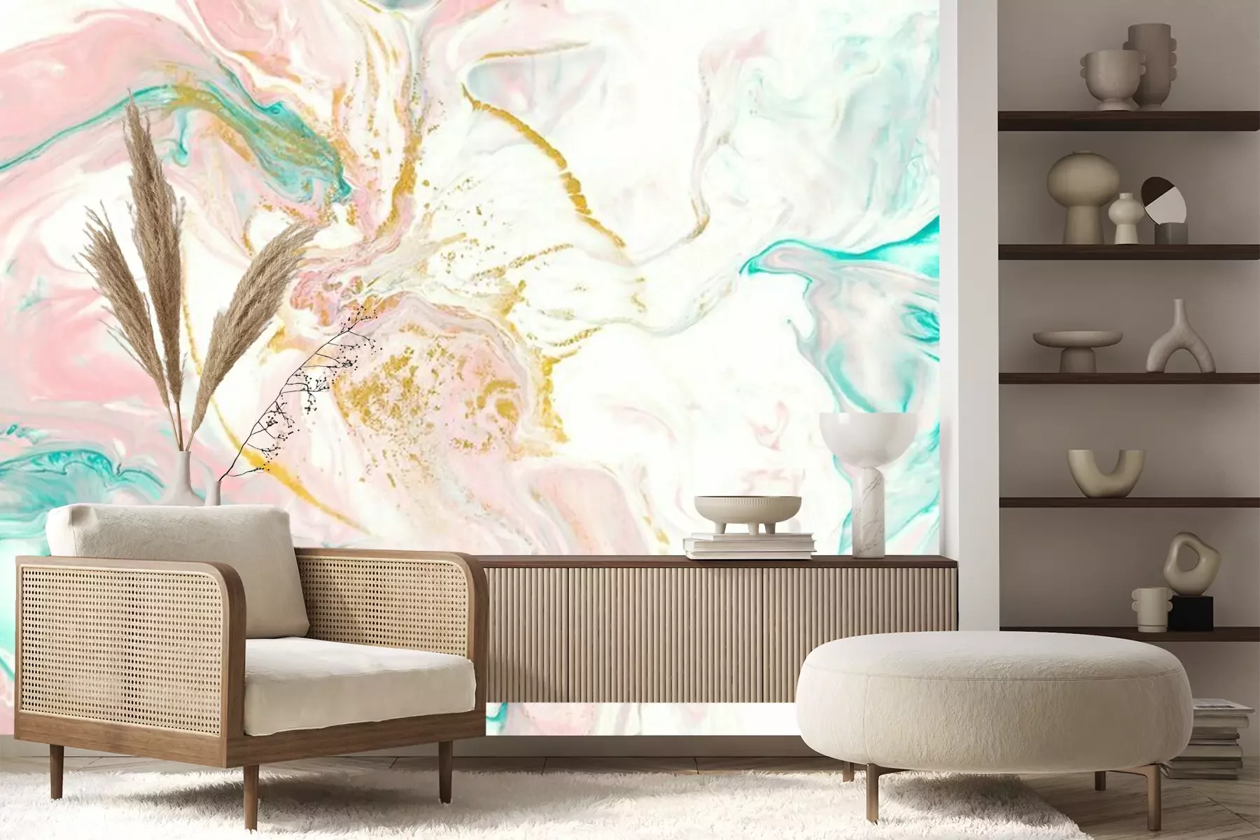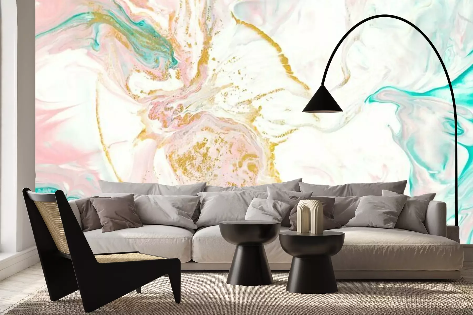 Das Material Premium+ besteht aus einer strukturierten Vinyl-Oberschicht und einem Trägermaterial (Vlies) mit einer Grammatur von 255 g/m², das kleine Unebenheiten der Wand zuverlässig kaschiert. Die feine Sandstruktur verleiht der Oberfläche eine luxuriöse Haptik, während das halbmatte Finish die Tiefe der Farben betont. Das Material ist dampfdurchlässig – so kann diese Fototapete auch in Küchen und Badezimmern eingesetzt werden. Die maximale Breite einer Tapetenbahn beträgt 100 cm. Bei größeren Abmessungen besteht die Fototapete aus mehreren gleich großen Bahnen. Der Kleber wird direkt auf die Wand aufgetragen, und die Fototapete wird auf Stoß angebracht, was für einen ästhetischen Effekt ohne sichtbare Fugen sorgt. Die Oberfläche ist pflegeleicht und kann bei Bedarf sanft mit einem feuchten Tuch abgewischt werden.
