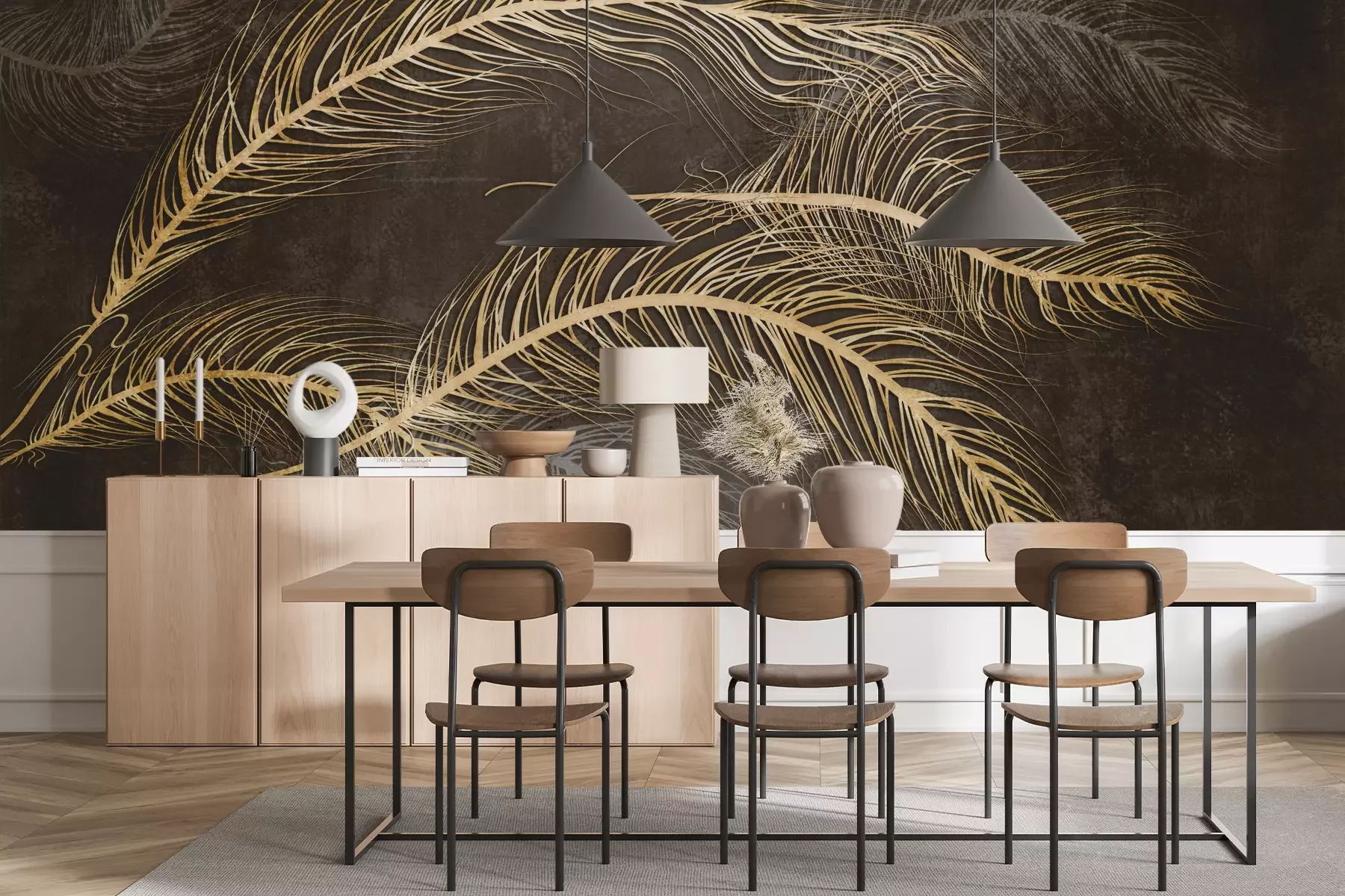 Das Material Premium+ besteht aus einer strukturierten Vinyl-Oberschicht und einem Trägermaterial (Vlies) mit einer Grammatur von 255 g/m², das kleine Unebenheiten der Wand zuverlässig kaschiert. Die feine Sandstruktur verleiht der Oberfläche eine luxuriöse Haptik, während das halbmatte Finish die Tiefe der Farben betont. Das Material ist dampfdurchlässig – so kann diese Fototapete auch in Küchen und Badezimmern eingesetzt werden. Die maximale Breite einer Tapetenbahn beträgt 100 cm. Bei größeren Abmessungen besteht die Fototapete aus mehreren gleich großen Bahnen. Der Kleber wird direkt auf die Wand aufgetragen, und die Fototapete wird auf Stoß angebracht, was für einen ästhetischen Effekt ohne sichtbare Fugen sorgt. Die Oberfläche ist pflegeleicht und kann bei Bedarf sanft mit einem feuchten Tuch abgewischt werden.