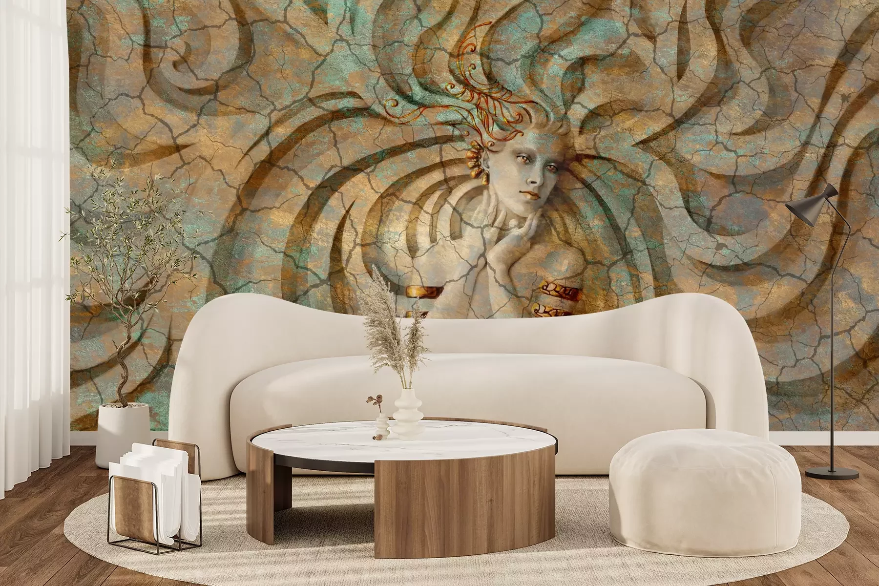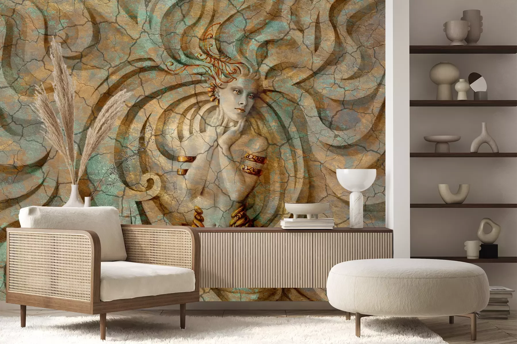 Das Material Premium+ besteht aus einer strukturierten Vinyl-Oberschicht und einem Trägermaterial (Vlies) mit einer Grammatur von 255 g/m², das kleine Unebenheiten der Wand zuverlässig kaschiert. Die feine Sandstruktur verleiht der Oberfläche eine luxuriöse Haptik, während das halbmatte Finish die Tiefe der Farben betont. Das Material ist dampfdurchlässig – so kann diese Fototapete auch in Küchen und Badezimmern eingesetzt werden. Die maximale Breite einer Tapetenbahn beträgt 100 cm. Bei größeren Abmessungen besteht die Fototapete aus mehreren gleich großen Bahnen. Der Kleber wird direkt auf die Wand aufgetragen, und die Fototapete wird auf Stoß angebracht, was für einen ästhetischen Effekt ohne sichtbare Fugen sorgt. Die Oberfläche ist pflegeleicht und kann bei Bedarf sanft mit einem feuchten Tuch abgewischt werden.