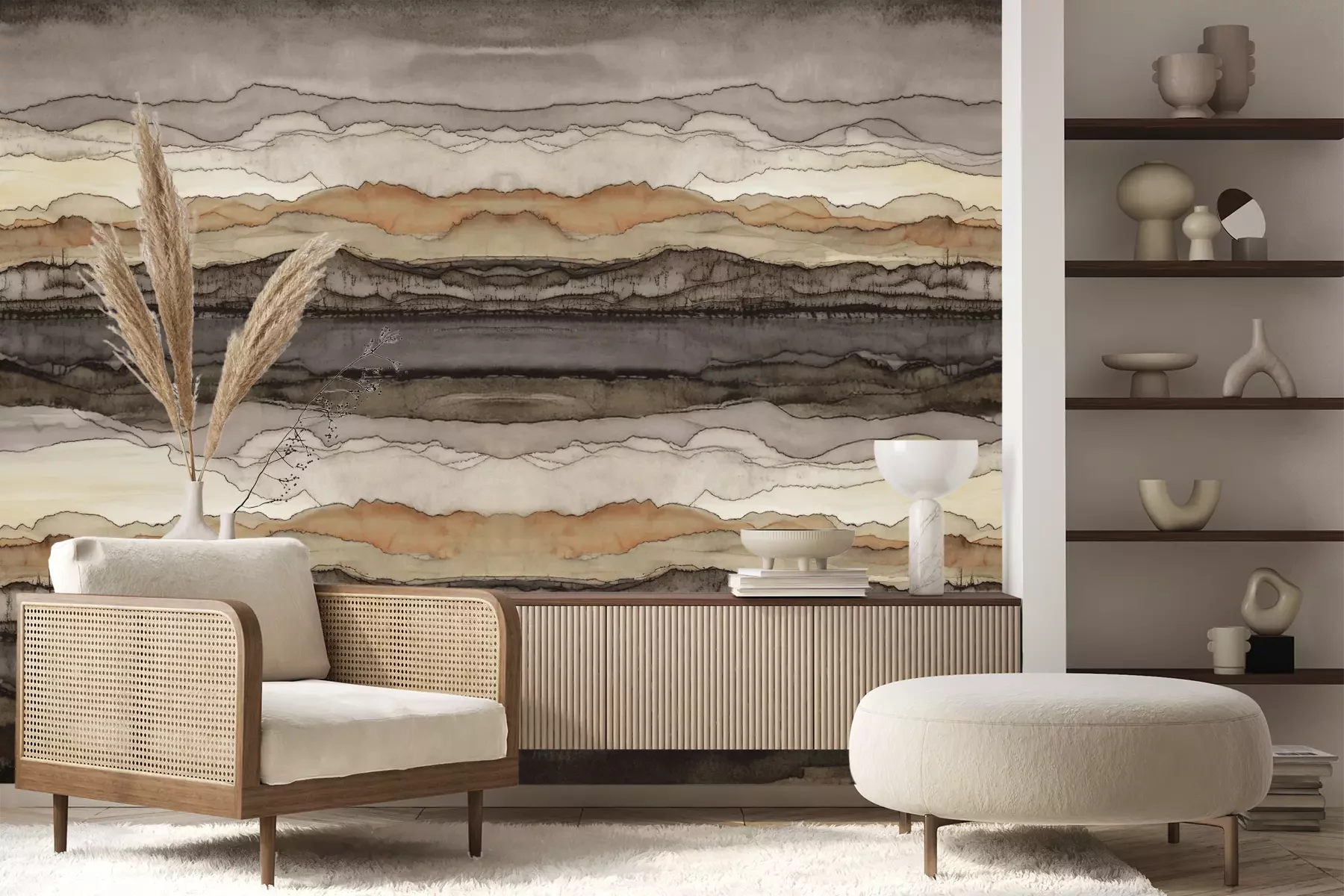 Das Material Premium+ besteht aus einer strukturierten Vinyl-Oberschicht und einem Trägermaterial (Vlies) mit einer Grammatur von 255 g/m², das kleine Unebenheiten der Wand zuverlässig kaschiert. Die feine Sandstruktur verleiht der Oberfläche eine luxuriöse Haptik, während das halbmatte Finish die Tiefe der Farben betont. Das Material ist dampfdurchlässig – so kann diese Fototapete auch in Küchen und Badezimmern eingesetzt werden. Die maximale Breite einer Tapetenbahn beträgt 100 cm. Bei größeren Abmessungen besteht die Fototapete aus mehreren gleich großen Bahnen. Der Kleber wird direkt auf die Wand aufgetragen, und die Fototapete wird auf Stoß angebracht, was für einen ästhetischen Effekt ohne sichtbare Fugen sorgt. Die Oberfläche ist pflegeleicht und kann bei Bedarf sanft mit einem feuchten Tuch abgewischt werden.