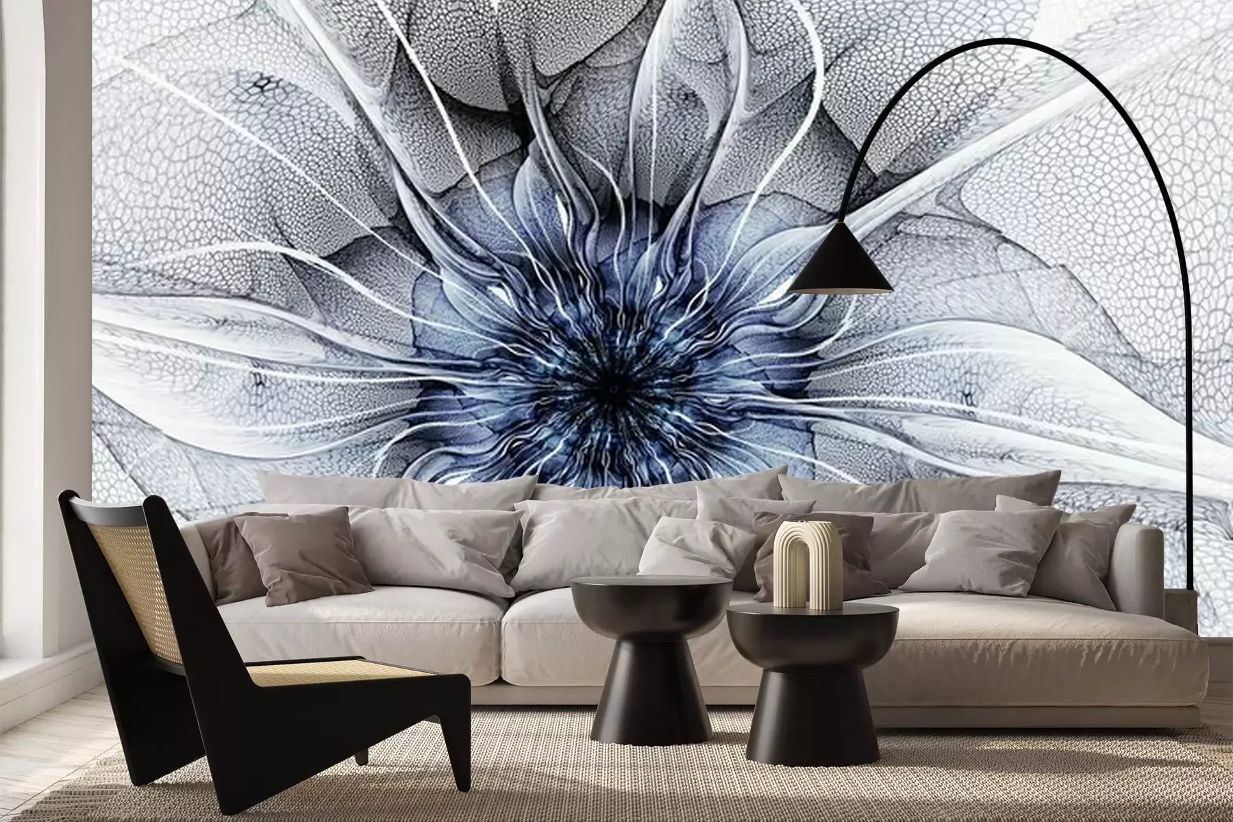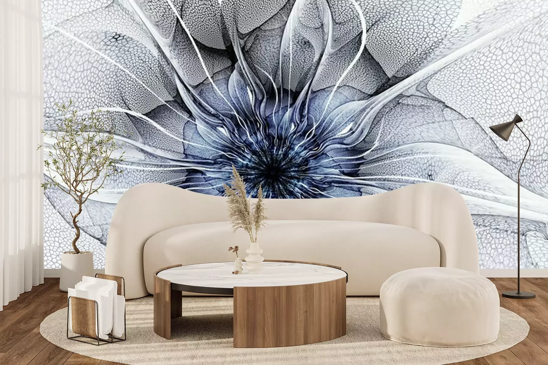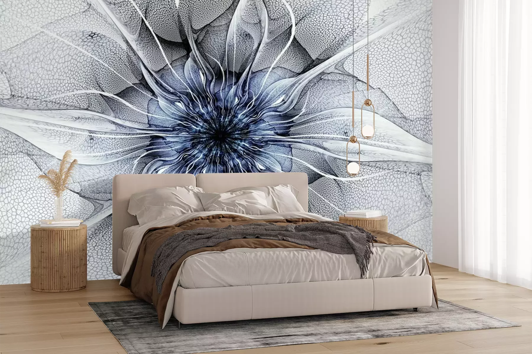 Das Material Premium+ besteht aus einer strukturierten Vinyl-Oberschicht und einem Trägermaterial (Vlies) mit einer Grammatur von 255 g/m², das kleine Unebenheiten der Wand zuverlässig kaschiert. Die feine Sandstruktur verleiht der Oberfläche eine luxuriöse Haptik, während das halbmatte Finish die Tiefe der Farben betont. Das Material ist dampfdurchlässig – so kann diese Fototapete auch in Küchen und Badezimmern eingesetzt werden. Die maximale Breite einer Tapetenbahn beträgt 100 cm. Bei größeren Abmessungen besteht die Fototapete aus mehreren gleich großen Bahnen. Der Kleber wird direkt auf die Wand aufgetragen, und die Fototapete wird auf Stoß angebracht, was für einen ästhetischen Effekt ohne sichtbare Fugen sorgt. Die Oberfläche ist pflegeleicht und kann bei Bedarf sanft mit einem feuchten Tuch abgewischt werden.
