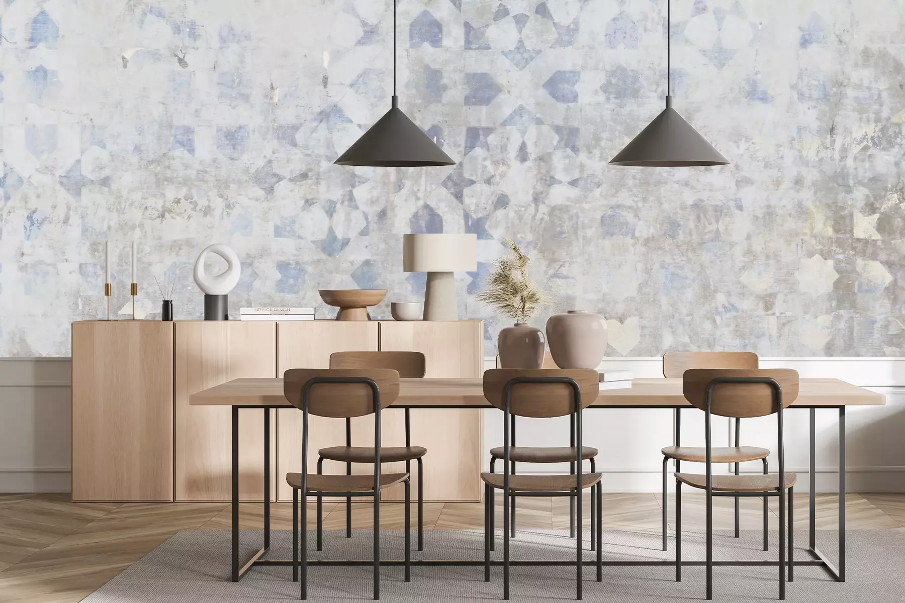 Das Material Standard ist ein hochwertiges Latexmaterial mit einer glatten, matten Oberfläche. Durch den Einsatz von HP-Latex-Drucktechnologie sind die Farben satt, langlebig und UV-beständig. So bleibt das Muster über Jahre hinweg makellos schön. Die verschmutzte Oberfläche dieses Materials kann sanft mit einem trockenen Tuch abgewischt werden. Die maximale Breite einer einzelnen Bahn beträgt 95 cm oder 105 cm – je nach Breite der bestellten Fototapete. Bei Fototapeten mit größeren Abmessungen besteht der Ausdruck aus mehreren gleich großen Tapetenbahnen. Die Fototapete wird auf Stoß angebracht, wodurch die Fugen nahezu unsichtbar sind.