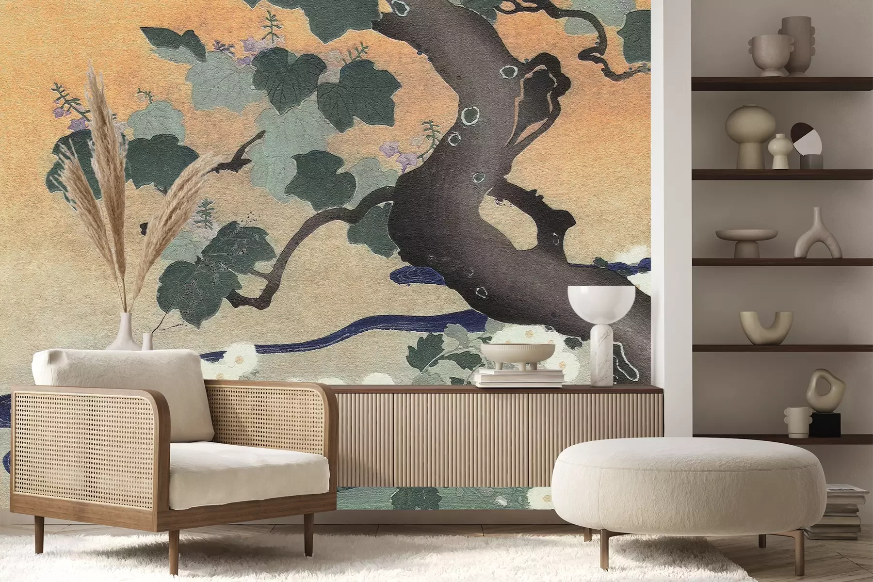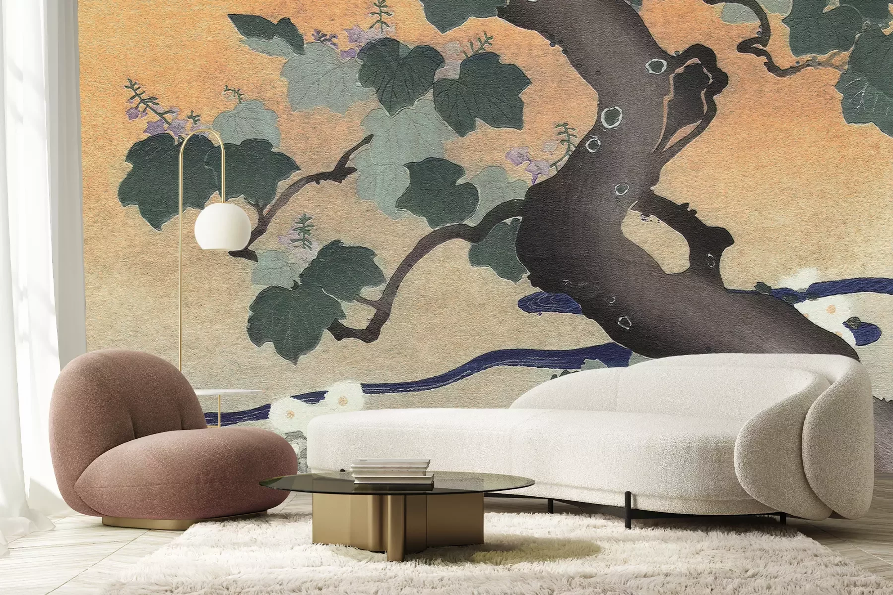 Das Material Premium+ besteht aus einer strukturierten Vinyl-Oberschicht und einem Trägermaterial (Vlies) mit einer Grammatur von 255 g/m², das kleine Unebenheiten der Wand zuverlässig kaschiert. Die feine Sandstruktur verleiht der Oberfläche eine luxuriöse Haptik, während das halbmatte Finish die Tiefe der Farben betont. Das Material ist dampfdurchlässig – so kann diese Fototapete auch in Küchen und Badezimmern eingesetzt werden. Die maximale Breite einer Tapetenbahn beträgt 100 cm. Bei größeren Abmessungen besteht die Fototapete aus mehreren gleich großen Bahnen. Der Kleber wird direkt auf die Wand aufgetragen, und die Fototapete wird auf Stoß angebracht, was für einen ästhetischen Effekt ohne sichtbare Fugen sorgt. Die Oberfläche ist pflegeleicht und kann bei Bedarf sanft mit einem feuchten Tuch abgewischt werden.