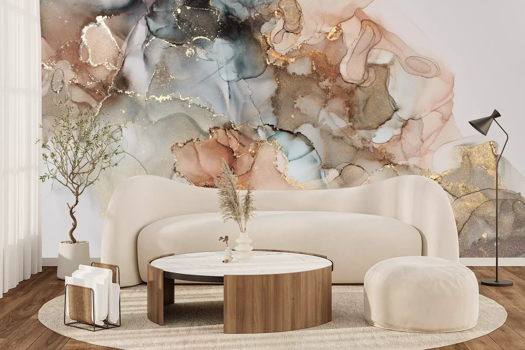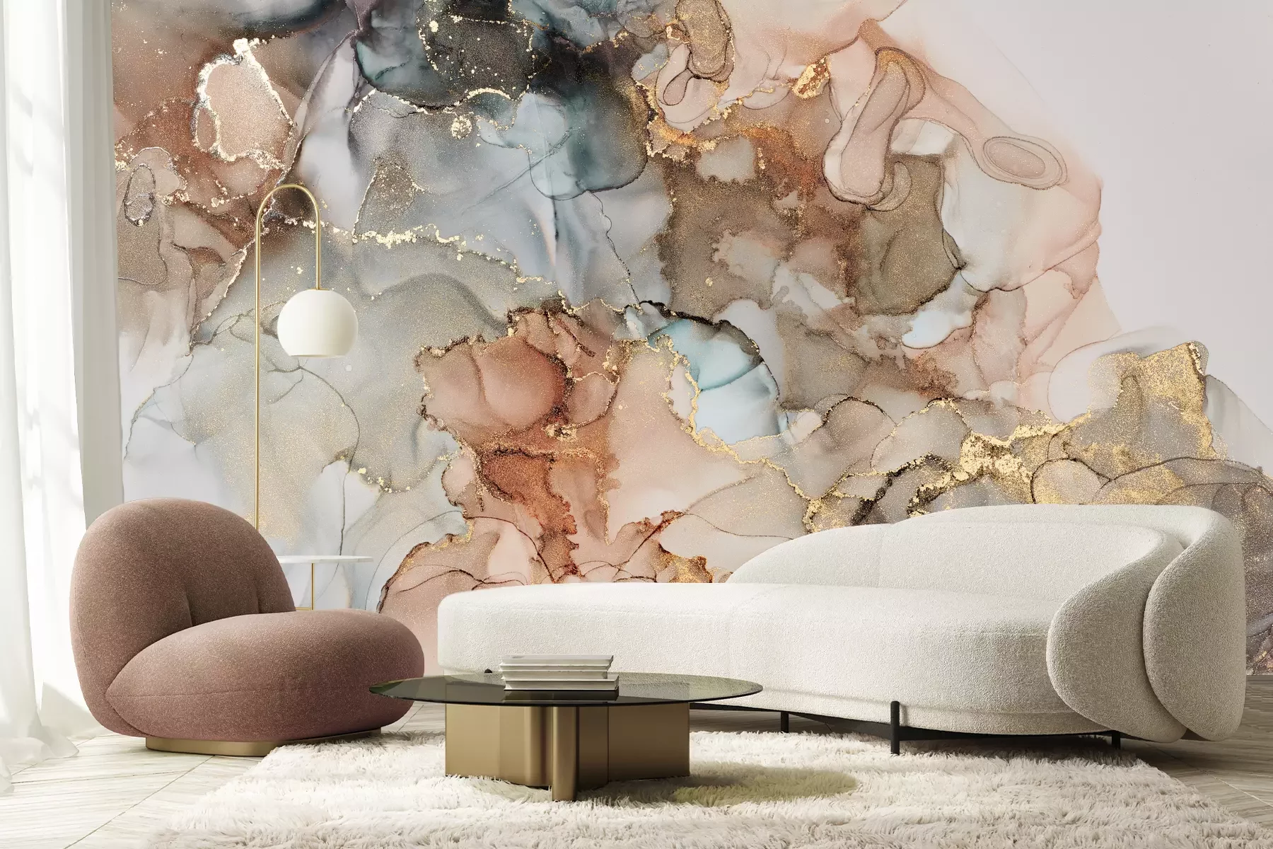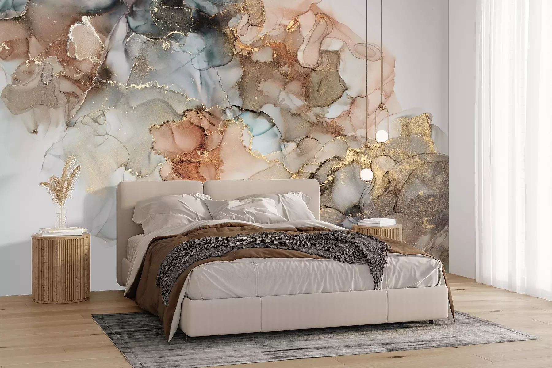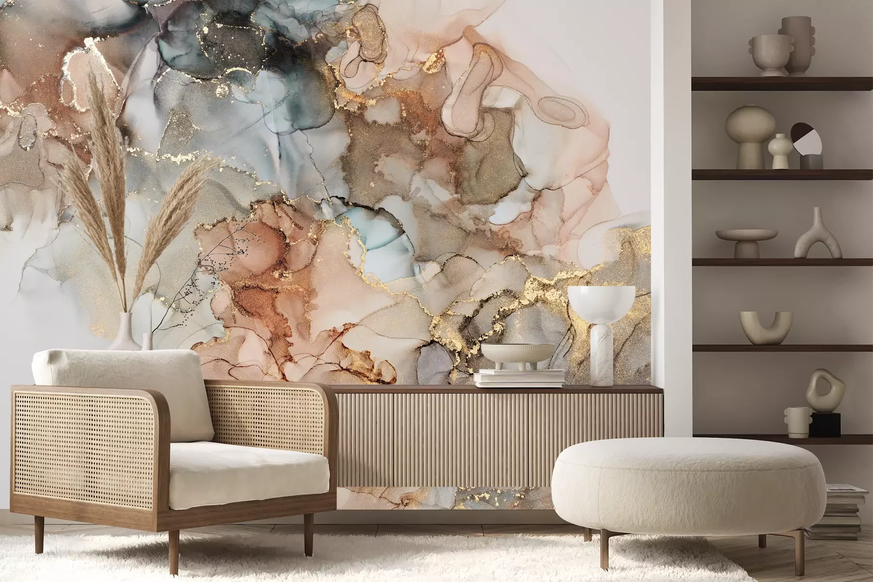 Das Material Premium+ besteht aus einer strukturierten Vinyl-Oberschicht und einem Trägermaterial (Vlies) mit einer Grammatur von 255 g/m², das kleine Unebenheiten der Wand zuverlässig kaschiert. Die feine Sandstruktur verleiht der Oberfläche eine luxuriöse Haptik, während das halbmatte Finish die Tiefe der Farben betont. Das Material ist dampfdurchlässig – so kann diese Fototapete auch in Küchen und Badezimmern eingesetzt werden. Die maximale Breite einer Tapetenbahn beträgt 100 cm. Bei größeren Abmessungen besteht die Fototapete aus mehreren gleich großen Bahnen. Der Kleber wird direkt auf die Wand aufgetragen, und die Fototapete wird auf Stoß angebracht, was für einen ästhetischen Effekt ohne sichtbare Fugen sorgt. Die Oberfläche ist pflegeleicht und kann bei Bedarf sanft mit einem feuchten Tuch abgewischt werden.