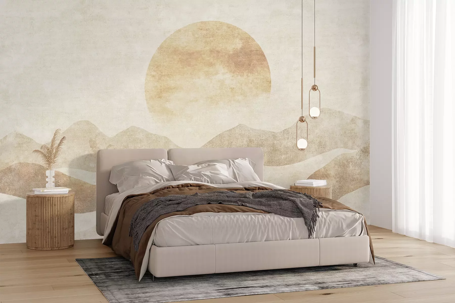 Die Fototapeten werden in Bahnen geliefert. Die Größe und die Anzahl der Bahnen, aus denen die gesamte Fototapete besteht, hängen vom gewählten Material ab. Wenn die Größe die maximale Breite des Materials überschreitet, besteht der Ausdruck aus mehreren gleich großen Bahnen.