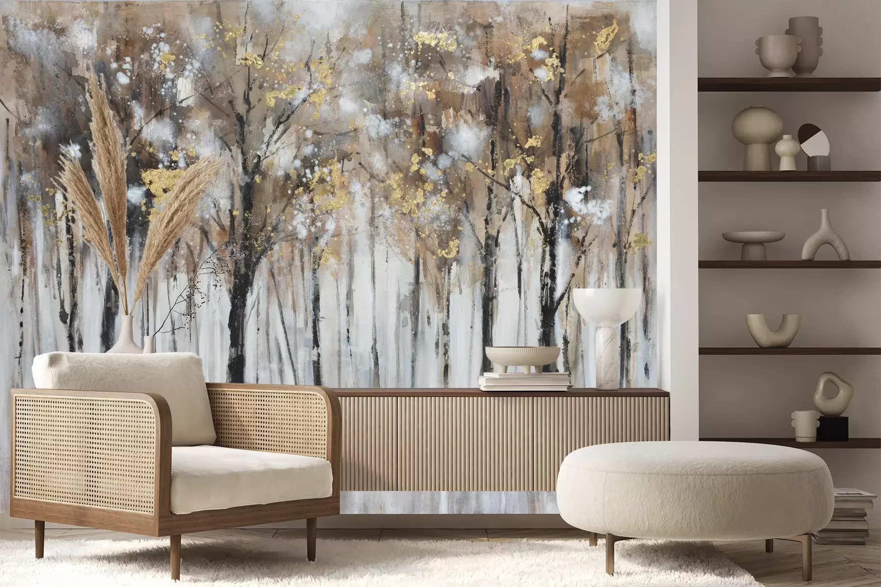 Das Material Premium+ besteht aus einer strukturierten Vinyl-Oberschicht und einem Trägermaterial (Vlies) mit einer Grammatur von 255 g/m², das kleine Unebenheiten der Wand zuverlässig kaschiert. Die feine Sandstruktur verleiht der Oberfläche eine luxuriöse Haptik, während das halbmatte Finish die Tiefe der Farben betont. Das Material ist dampfdurchlässig – so kann diese Fototapete auch in Küchen und Badezimmern eingesetzt werden. Die maximale Breite einer Tapetenbahn beträgt 100 cm. Bei größeren Abmessungen besteht die Fototapete aus mehreren gleich großen Bahnen. Der Kleber wird direkt auf die Wand aufgetragen, und die Fototapete wird auf Stoß angebracht, was für einen ästhetischen Effekt ohne sichtbare Fugen sorgt. Die Oberfläche ist pflegeleicht und kann bei Bedarf sanft mit einem feuchten Tuch abgewischt werden.