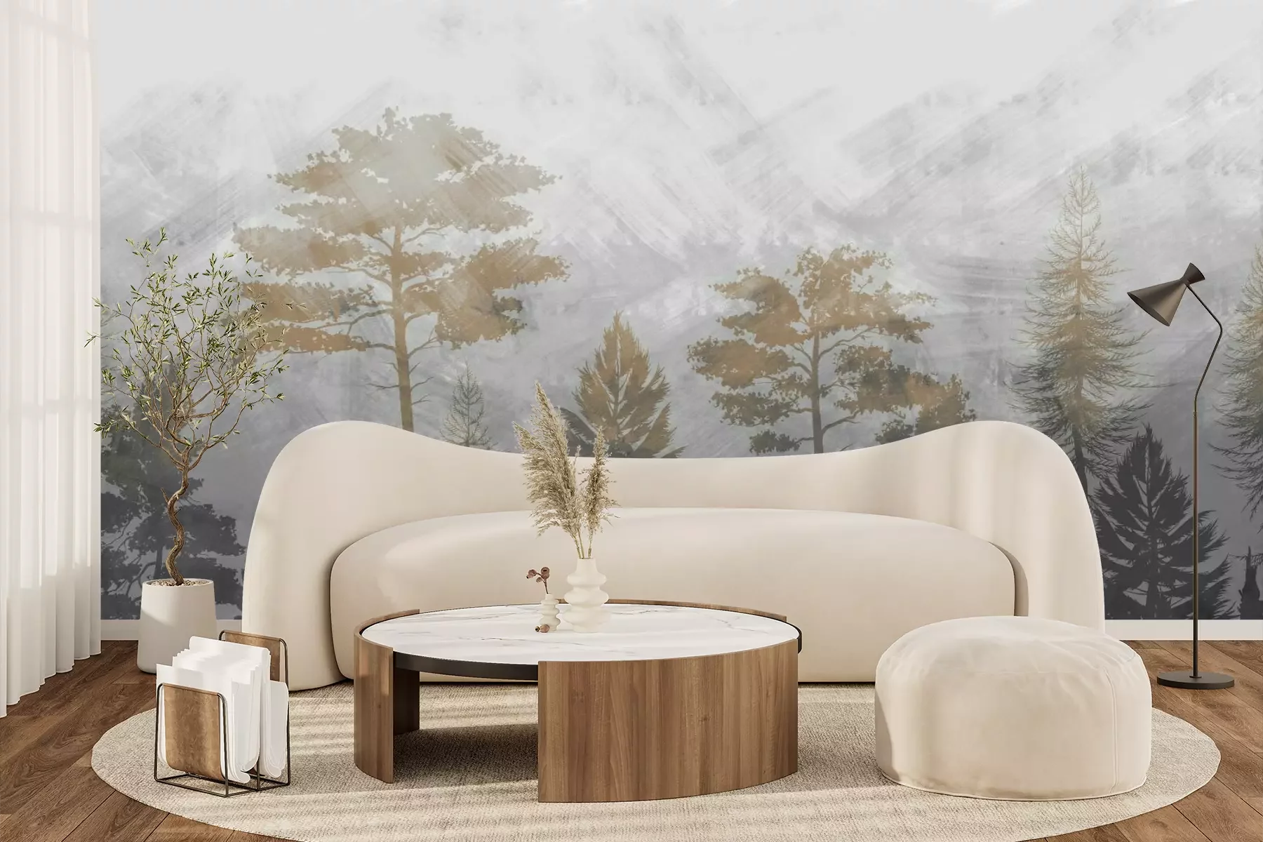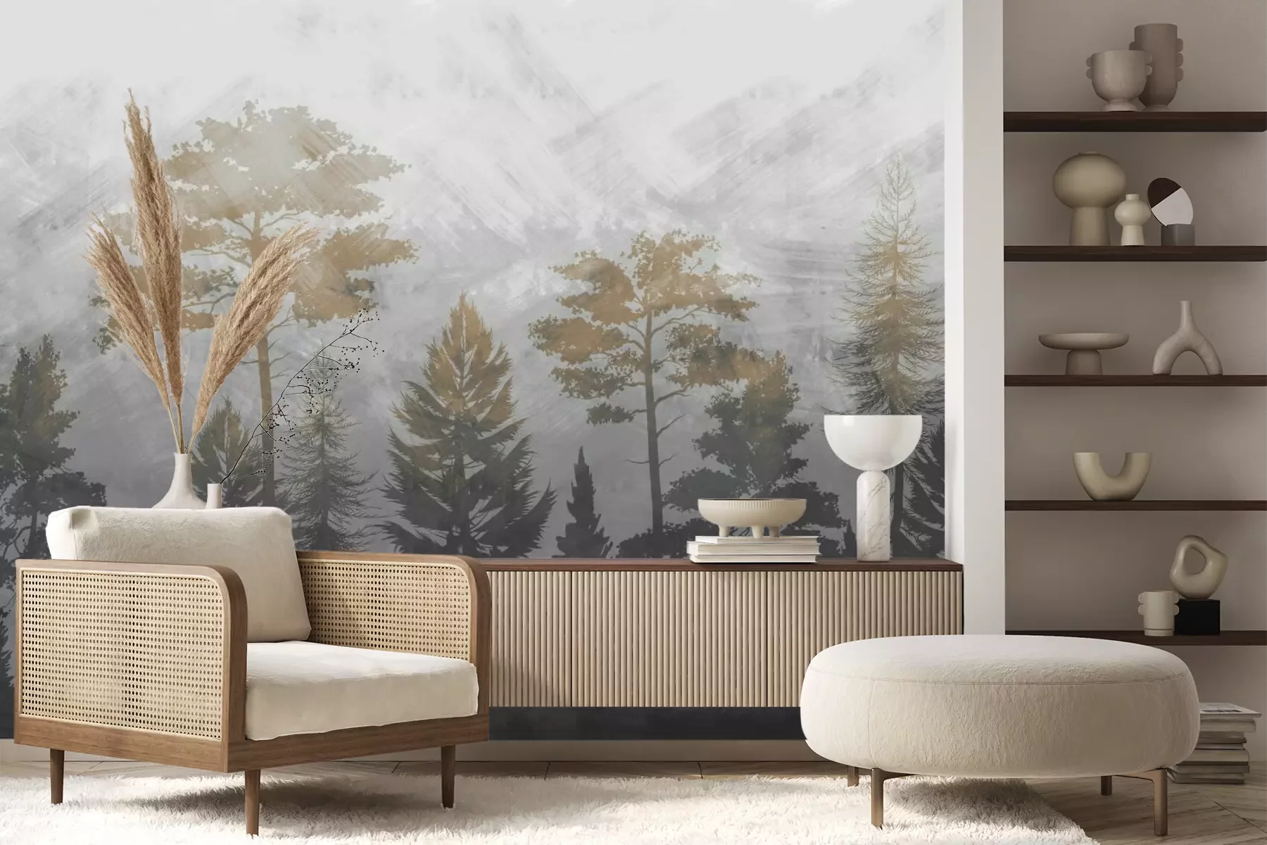 Das Material Premium+ besteht aus einer strukturierten Vinyl-Oberschicht und einem Trägermaterial (Vlies) mit einer Grammatur von 255 g/m², das kleine Unebenheiten der Wand zuverlässig kaschiert. Die feine Sandstruktur verleiht der Oberfläche eine luxuriöse Haptik, während das halbmatte Finish die Tiefe der Farben betont. Das Material ist dampfdurchlässig – so kann diese Fototapete auch in Küchen und Badezimmern eingesetzt werden. Die maximale Breite einer Tapetenbahn beträgt 100 cm. Bei größeren Abmessungen besteht die Fototapete aus mehreren gleich großen Bahnen. Der Kleber wird direkt auf die Wand aufgetragen, und die Fototapete wird auf Stoß angebracht, was für einen ästhetischen Effekt ohne sichtbare Fugen sorgt. Die Oberfläche ist pflegeleicht und kann bei Bedarf sanft mit einem feuchten Tuch abgewischt werden.