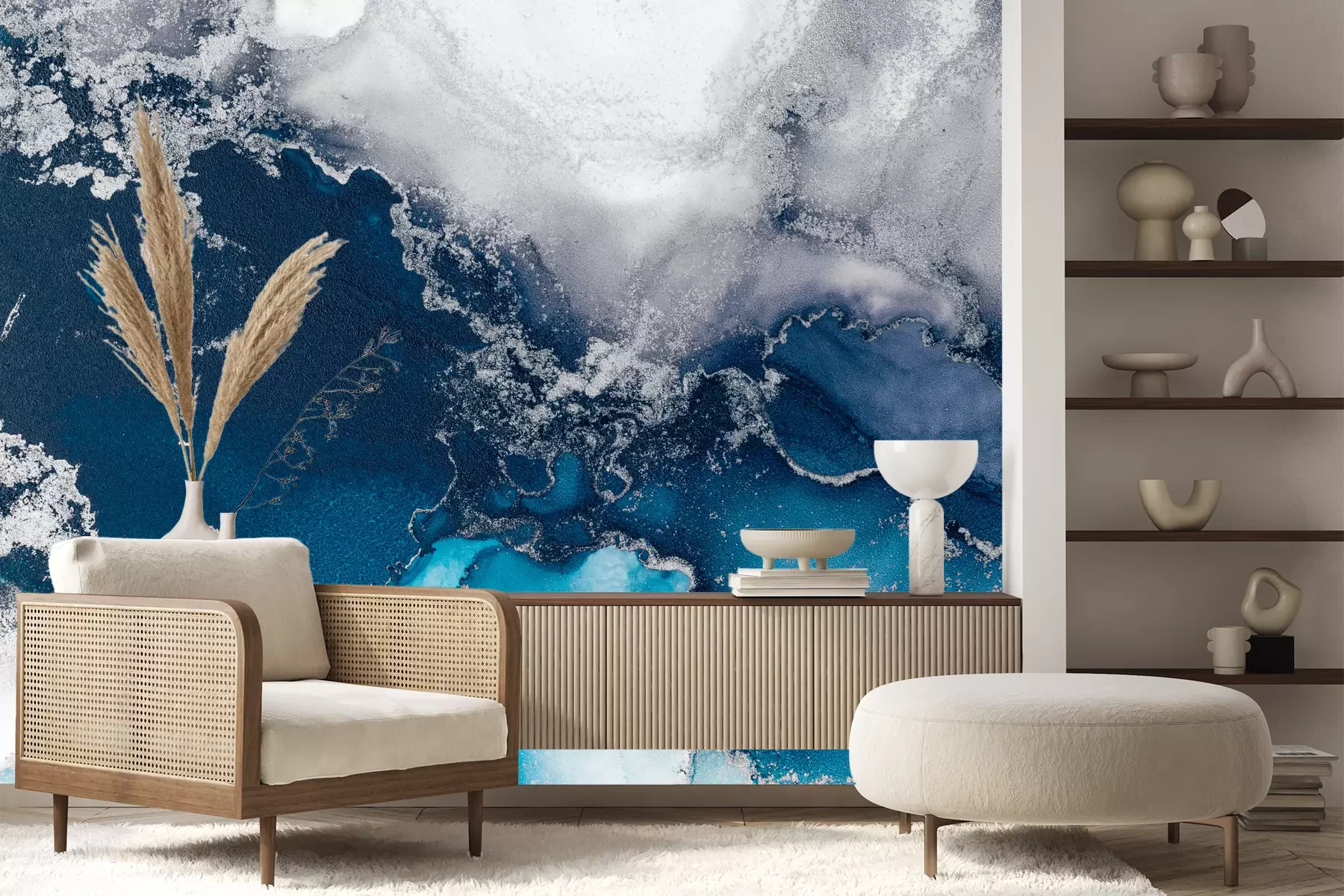 Das Material Premium+ besteht aus einer strukturierten Vinyl-Oberschicht und einem Trägermaterial (Vlies) mit einer Grammatur von 255 g/m², das kleine Unebenheiten der Wand zuverlässig kaschiert. Die feine Sandstruktur verleiht der Oberfläche eine luxuriöse Haptik, während das halbmatte Finish die Tiefe der Farben betont. Das Material ist dampfdurchlässig – so kann diese Fototapete auch in Küchen und Badezimmern eingesetzt werden. Die maximale Breite einer Tapetenbahn beträgt 100 cm. Bei größeren Abmessungen besteht die Fototapete aus mehreren gleich großen Bahnen. Der Kleber wird direkt auf die Wand aufgetragen, und die Fototapete wird auf Stoß angebracht, was für einen ästhetischen Effekt ohne sichtbare Fugen sorgt. Die Oberfläche ist pflegeleicht und kann bei Bedarf sanft mit einem feuchten Tuch abgewischt werden.