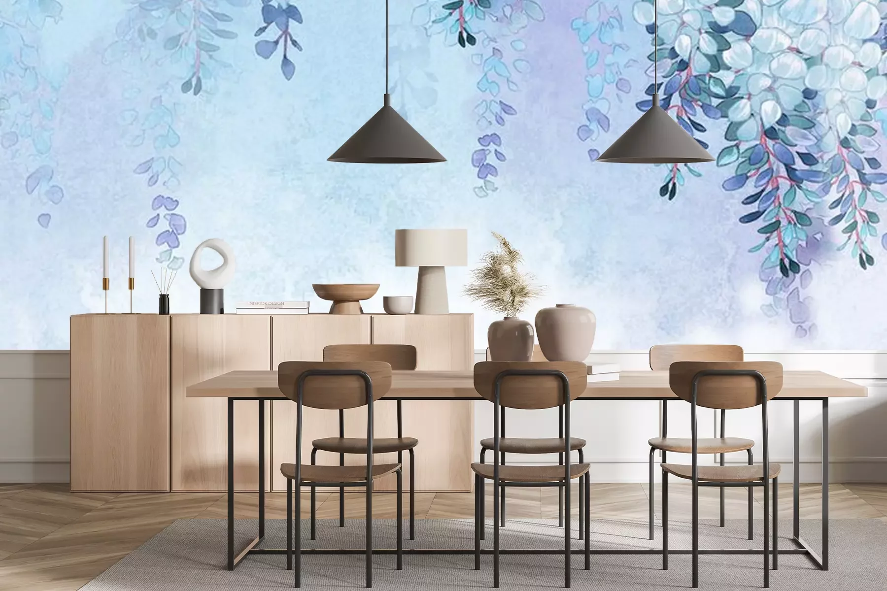 Fototapete Abstrakte Pflanzen auf einem Aquarellhintergrund