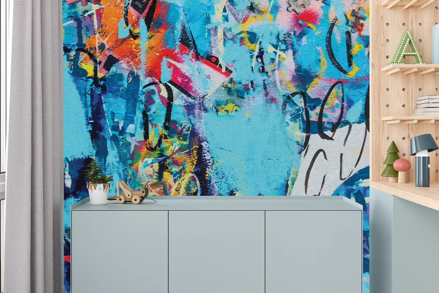 Das Material Premium+ besteht aus einer strukturierten Vinyl-Oberschicht und einem Trägermaterial (Vlies) mit einer Grammatur von 255 g/m², das kleine Unebenheiten der Wand zuverlässig kaschiert. Die feine Sandstruktur verleiht der Oberfläche eine luxuriöse Haptik, während das halbmatte Finish die Tiefe der Farben betont. Das Material ist dampfdurchlässig – so kann diese Fototapete auch in Küchen und Badezimmern eingesetzt werden. Die maximale Breite einer Tapetenbahn beträgt 100 cm. Bei größeren Abmessungen besteht die Fototapete aus mehreren gleich großen Bahnen. Der Kleber wird direkt auf die Wand aufgetragen, und die Fototapete wird auf Stoß angebracht, was für einen ästhetischen Effekt ohne sichtbare Fugen sorgt. Die Oberfläche ist pflegeleicht und kann bei Bedarf sanft mit einem feuchten Tuch abgewischt werden.