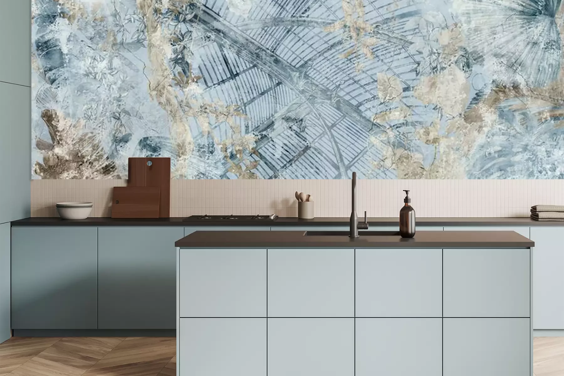 Graue Weidenblätter auf hellem AquarellgrundFototapete