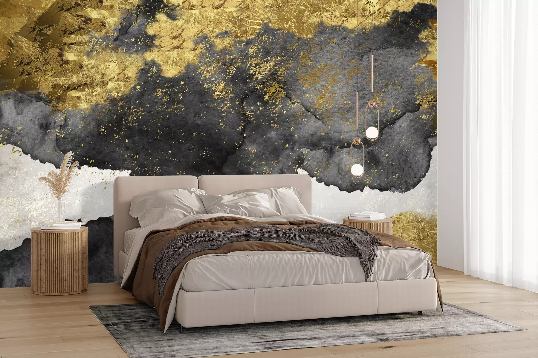 Die Fototapeten werden in Bahnen geliefert. Die Größe und die Anzahl der Bahnen, aus denen die gesamte Fototapete besteht, hängen vom gewählten Material ab. Wenn die Größe die maximale Breite des Materials überschreitet, besteht der Ausdruck aus mehreren gleich großen Bahnen.