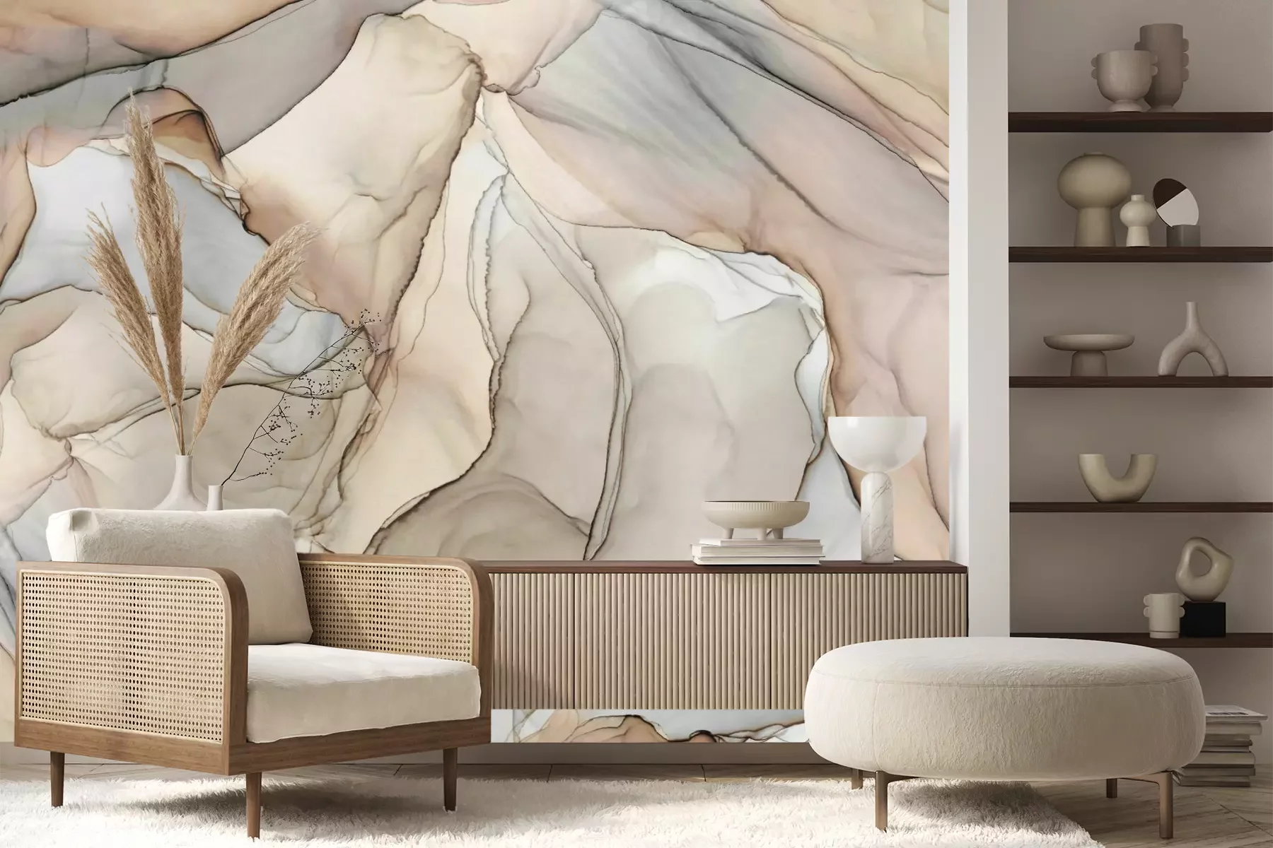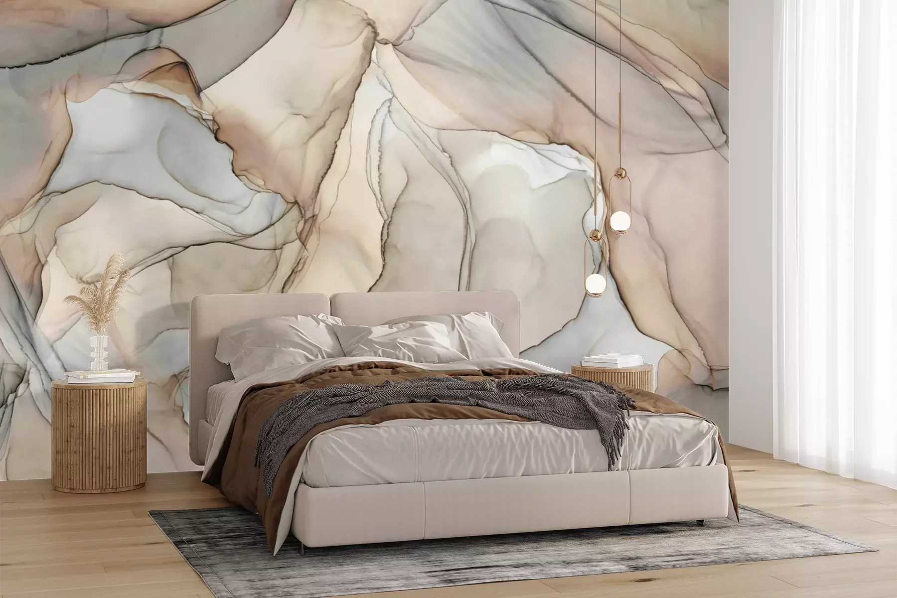 Das Material Premium+ besteht aus einer strukturierten Vinyl-Oberschicht und einem Trägermaterial (Vlies) mit einer Grammatur von 255 g/m², das kleine Unebenheiten der Wand zuverlässig kaschiert. Die feine Sandstruktur verleiht der Oberfläche eine luxuriöse Haptik, während das halbmatte Finish die Tiefe der Farben betont. Das Material ist dampfdurchlässig – so kann diese Fototapete auch in Küchen und Badezimmern eingesetzt werden. Die maximale Breite einer Tapetenbahn beträgt 100 cm. Bei größeren Abmessungen besteht die Fototapete aus mehreren gleich großen Bahnen. Der Kleber wird direkt auf die Wand aufgetragen, und die Fototapete wird auf Stoß angebracht, was für einen ästhetischen Effekt ohne sichtbare Fugen sorgt. Die Oberfläche ist pflegeleicht und kann bei Bedarf sanft mit einem feuchten Tuch abgewischt werden.