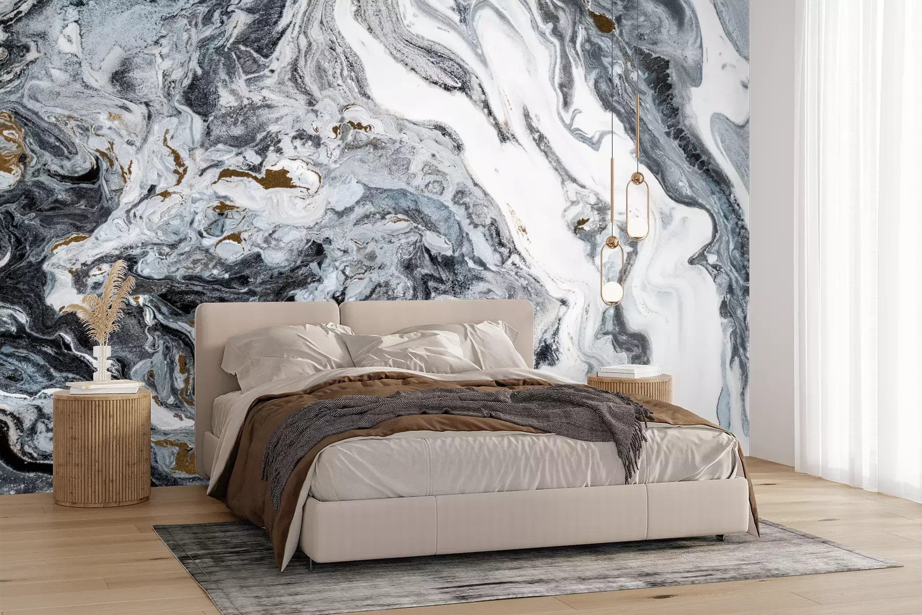 Das Material Premium+ besteht aus einer strukturierten Vinyl-Oberschicht und einem Trägermaterial (Vlies) mit einer Grammatur von 255 g/m², das kleine Unebenheiten der Wand zuverlässig kaschiert. Die feine Sandstruktur verleiht der Oberfläche eine luxuriöse Haptik, während das halbmatte Finish die Tiefe der Farben betont. Das Material ist dampfdurchlässig – so kann diese Fototapete auch in Küchen und Badezimmern eingesetzt werden. Die maximale Breite einer Tapetenbahn beträgt 100 cm. Bei größeren Abmessungen besteht die Fototapete aus mehreren gleich großen Bahnen. Der Kleber wird direkt auf die Wand aufgetragen, und die Fototapete wird auf Stoß angebracht, was für einen ästhetischen Effekt ohne sichtbare Fugen sorgt. Die Oberfläche ist pflegeleicht und kann bei Bedarf sanft mit einem feuchten Tuch abgewischt werden.