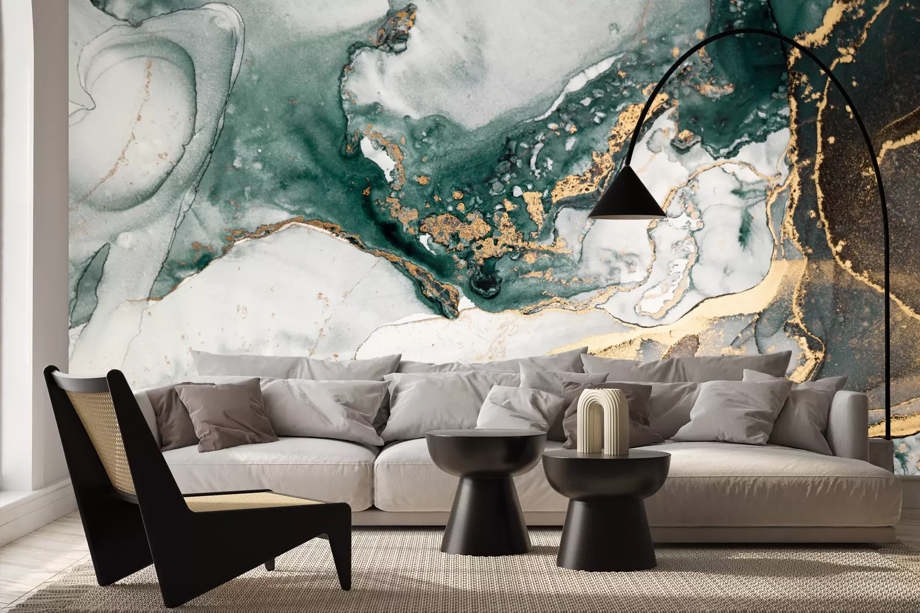 Das Material Premium+ besteht aus einer strukturierten Vinyl-Oberschicht und einem Trägermaterial (Vlies) mit einer Grammatur von 255 g/m², das kleine Unebenheiten der Wand zuverlässig kaschiert. Die feine Sandstruktur verleiht der Oberfläche eine luxuriöse Haptik, während das halbmatte Finish die Tiefe der Farben betont. Das Material ist dampfdurchlässig – so kann diese Fototapete auch in Küchen und Badezimmern eingesetzt werden. Die maximale Breite einer Tapetenbahn beträgt 100 cm. Bei größeren Abmessungen besteht die Fototapete aus mehreren gleich großen Bahnen. Der Kleber wird direkt auf die Wand aufgetragen, und die Fototapete wird auf Stoß angebracht, was für einen ästhetischen Effekt ohne sichtbare Fugen sorgt. Die Oberfläche ist pflegeleicht und kann bei Bedarf sanft mit einem feuchten Tuch abgewischt werden.