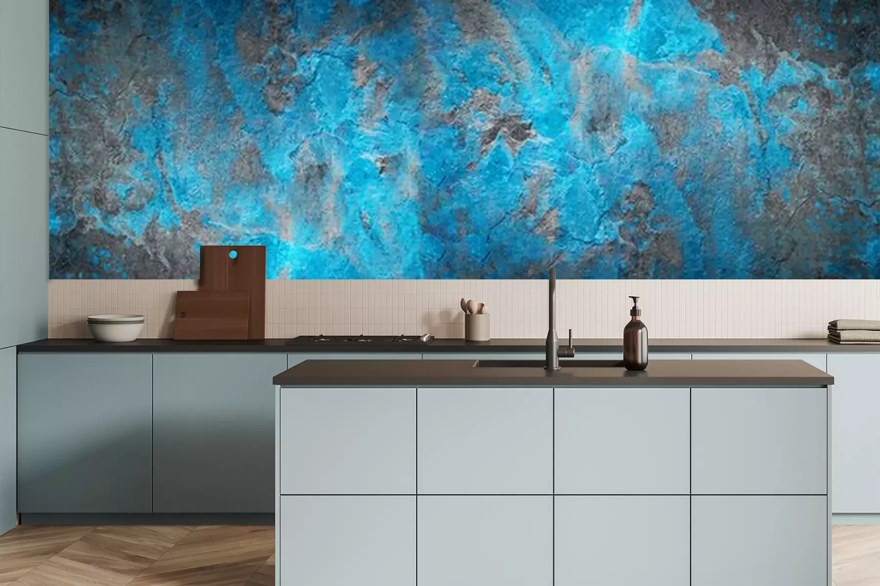 Fototapete Abstrakter türkisfarbener Lumen unterm Beton