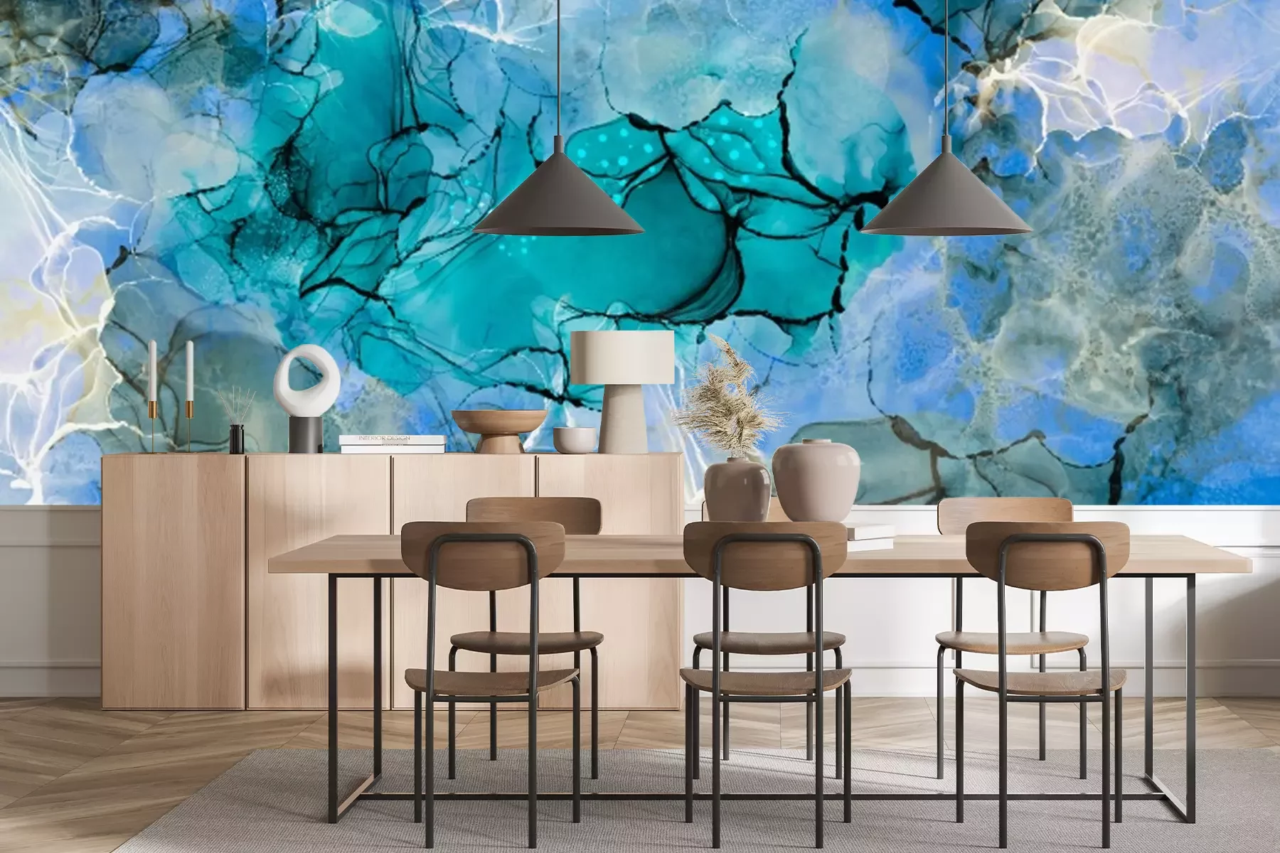 Fototapete Abstrakter Türkishintergrund gemalt mit Aquarell