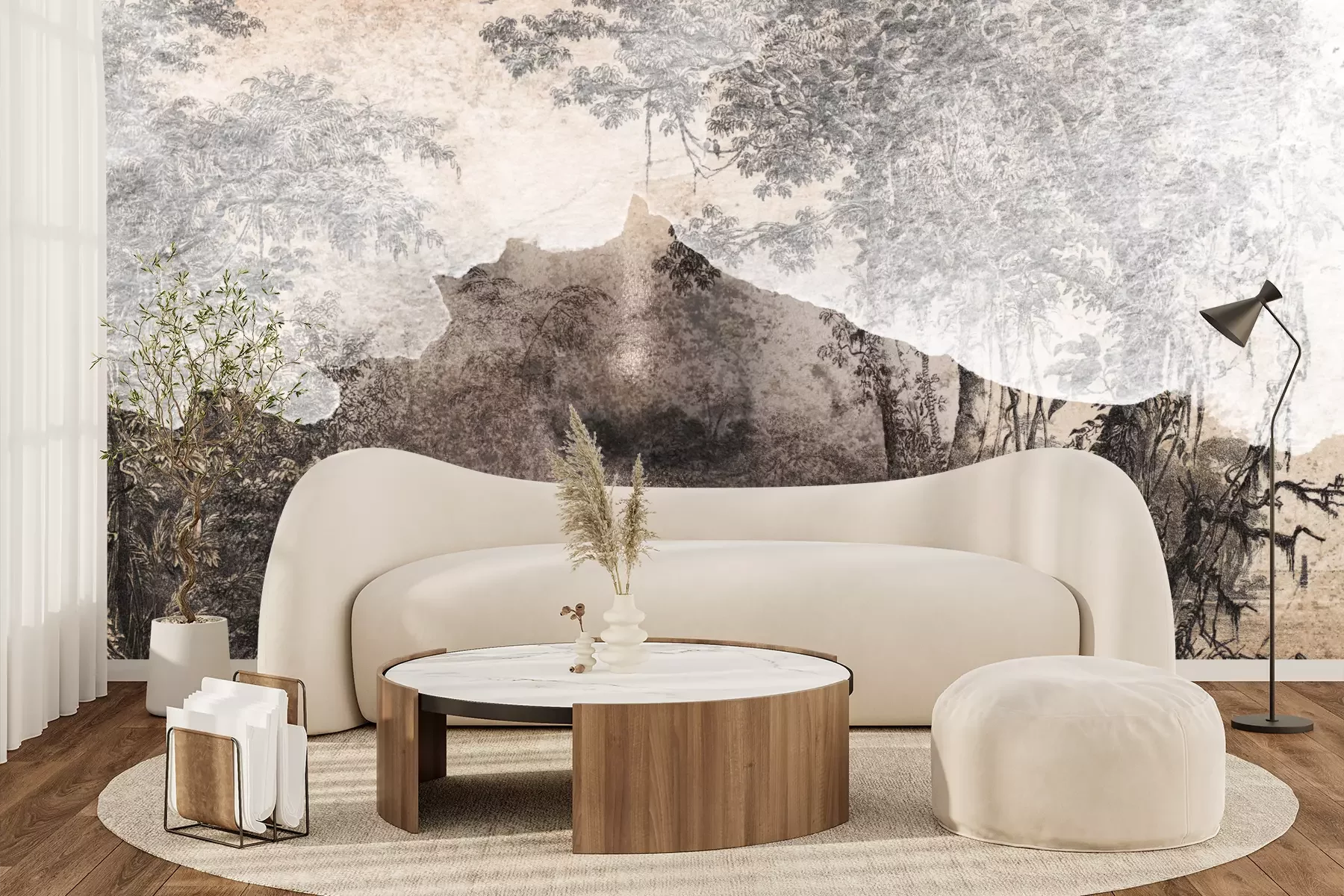 Das Material Premium+ besteht aus einer strukturierten Vinyl-Oberschicht und einem Trägermaterial (Vlies) mit einer Grammatur von 255 g/m², das kleine Unebenheiten der Wand zuverlässig kaschiert. Die feine Sandstruktur verleiht der Oberfläche eine luxuriöse Haptik, während das halbmatte Finish die Tiefe der Farben betont. Das Material ist dampfdurchlässig – so kann diese Fototapete auch in Küchen und Badezimmern eingesetzt werden. Die maximale Breite einer Tapetenbahn beträgt 100 cm. Bei größeren Abmessungen besteht die Fototapete aus mehreren gleich großen Bahnen. Der Kleber wird direkt auf die Wand aufgetragen, und die Fototapete wird auf Stoß angebracht, was für einen ästhetischen Effekt ohne sichtbare Fugen sorgt. Die Oberfläche ist pflegeleicht und kann bei Bedarf sanft mit einem feuchten Tuch abgewischt werden.