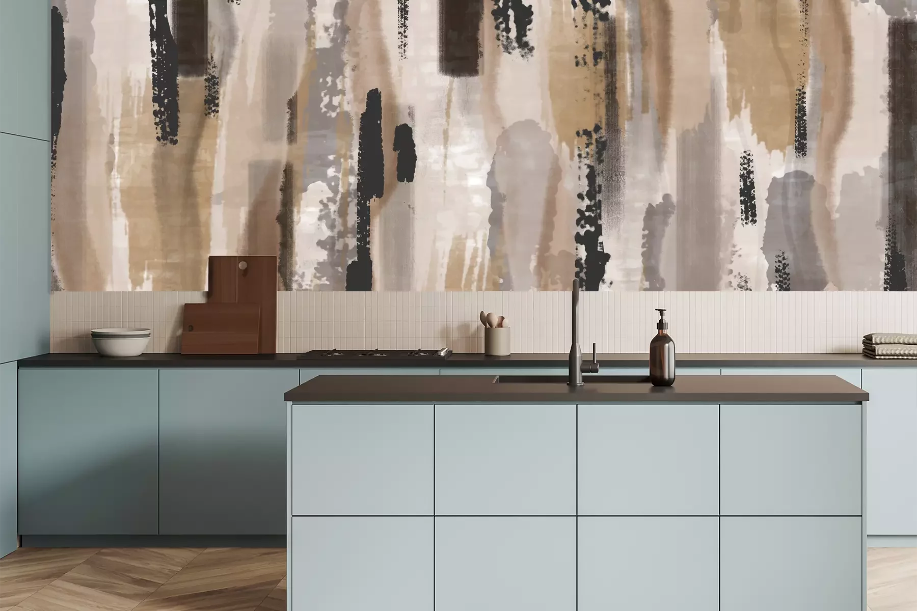 Das Material Premium+ besteht aus einer strukturierten Vinyl-Oberschicht und einem Trägermaterial (Vlies) mit einer Grammatur von 255 g/m², das kleine Unebenheiten der Wand zuverlässig kaschiert. Die feine Sandstruktur verleiht der Oberfläche eine luxuriöse Haptik, während das halbmatte Finish die Tiefe der Farben betont. Das Material ist dampfdurchlässig – so kann diese Fototapete auch in Küchen und Badezimmern eingesetzt werden. Die maximale Breite einer Tapetenbahn beträgt 100 cm. Bei größeren Abmessungen besteht die Fototapete aus mehreren gleich großen Bahnen. Der Kleber wird direkt auf die Wand aufgetragen, und die Fototapete wird auf Stoß angebracht, was für einen ästhetischen Effekt ohne sichtbare Fugen sorgt. Die Oberfläche ist pflegeleicht und kann bei Bedarf sanft mit einem feuchten Tuch abgewischt werden.