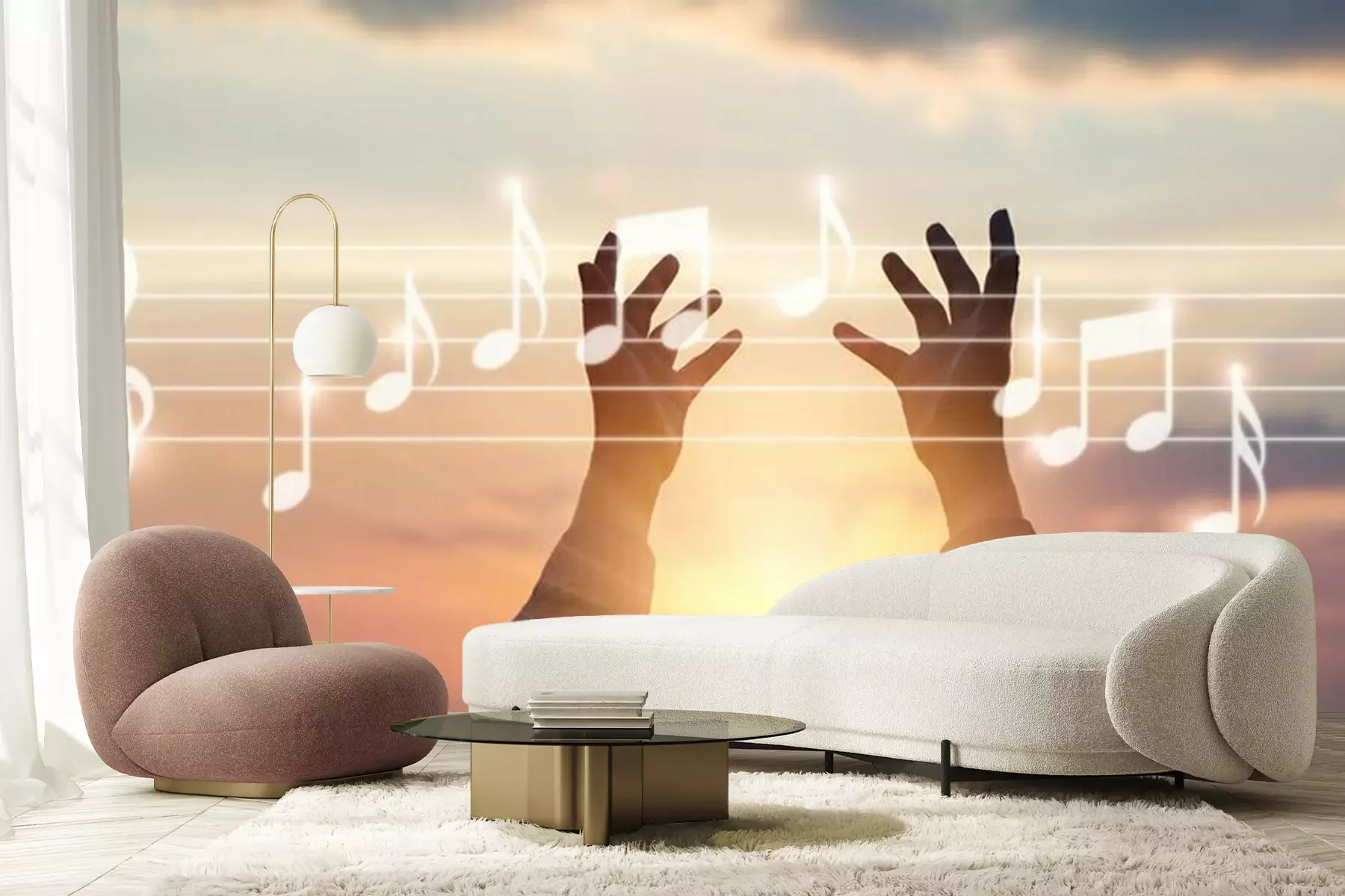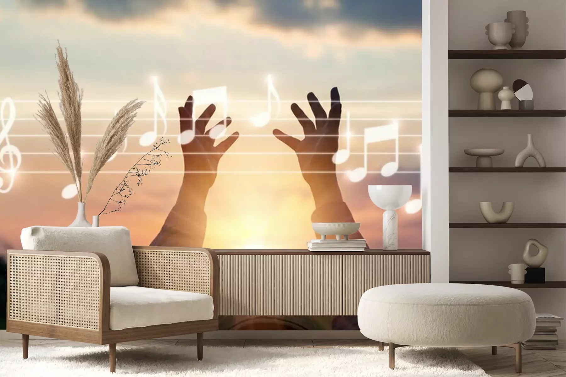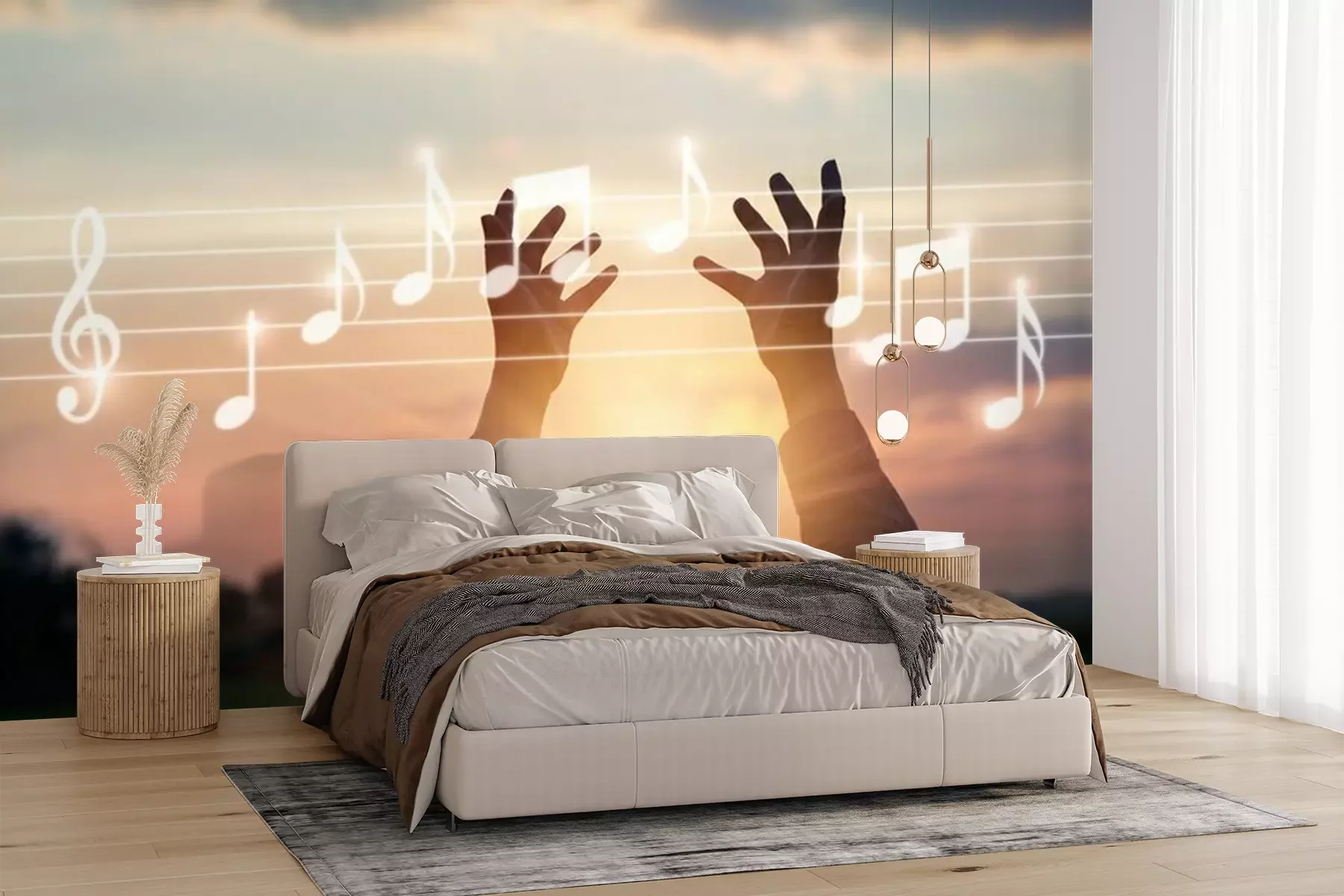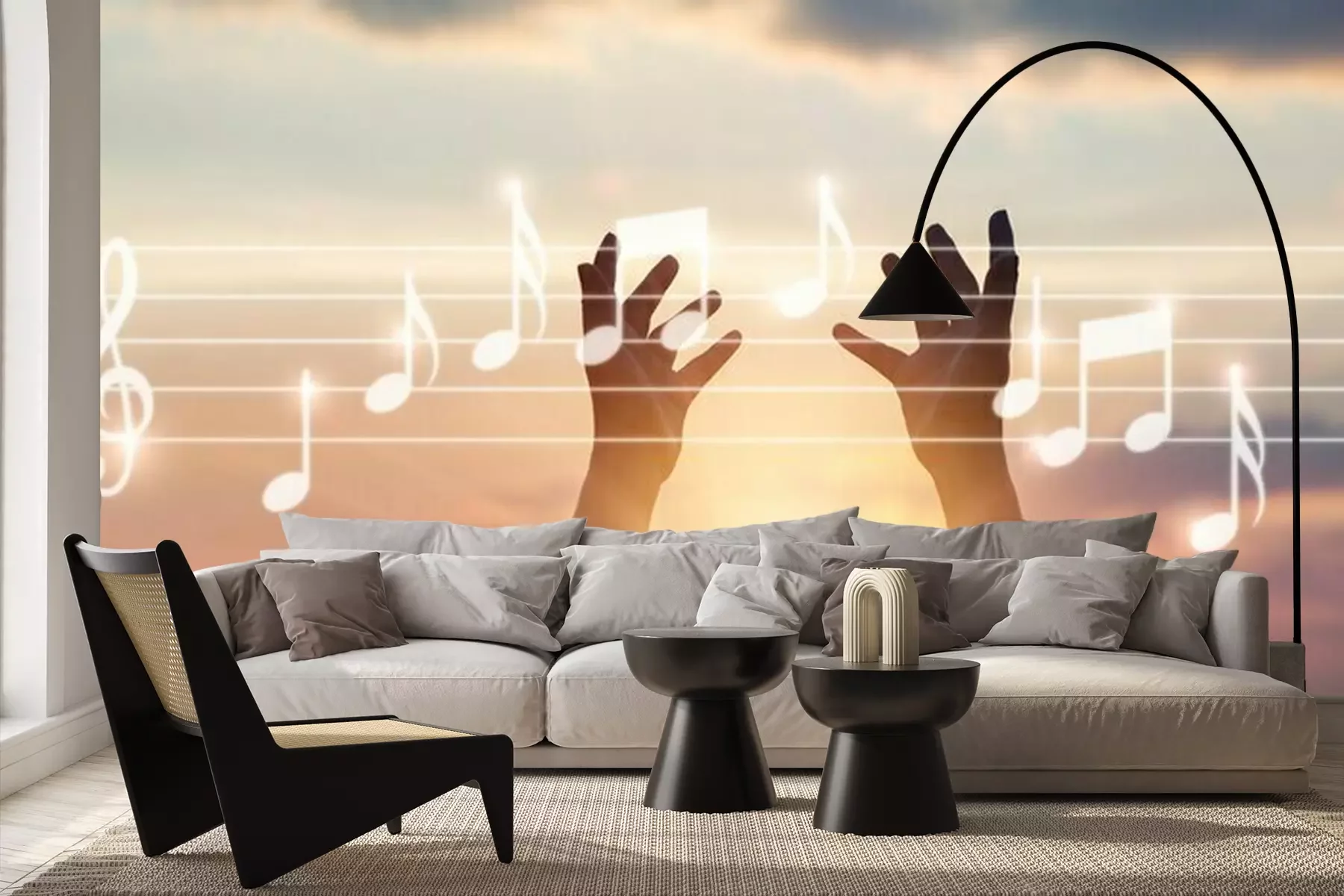 Fototapete Abstraktes Notensystem vor dem Hintergrund der Natur