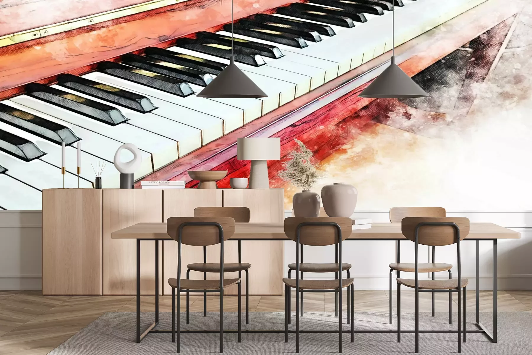 Das Material Premium+ besteht aus einer strukturierten Vinyl-Oberschicht und einem Trägermaterial (Vlies) mit einer Grammatur von 255 g/m², das kleine Unebenheiten der Wand zuverlässig kaschiert. Die feine Sandstruktur verleiht der Oberfläche eine luxuriöse Haptik, während das halbmatte Finish die Tiefe der Farben betont. Das Material ist dampfdurchlässig – so kann diese Fototapete auch in Küchen und Badezimmern eingesetzt werden. Die maximale Breite einer Tapetenbahn beträgt 100 cm. Bei größeren Abmessungen besteht die Fototapete aus mehreren gleich großen Bahnen. Der Kleber wird direkt auf die Wand aufgetragen, und die Fototapete wird auf Stoß angebracht, was für einen ästhetischen Effekt ohne sichtbare Fugen sorgt. Die Oberfläche ist pflegeleicht und kann bei Bedarf sanft mit einem feuchten Tuch abgewischt werden.