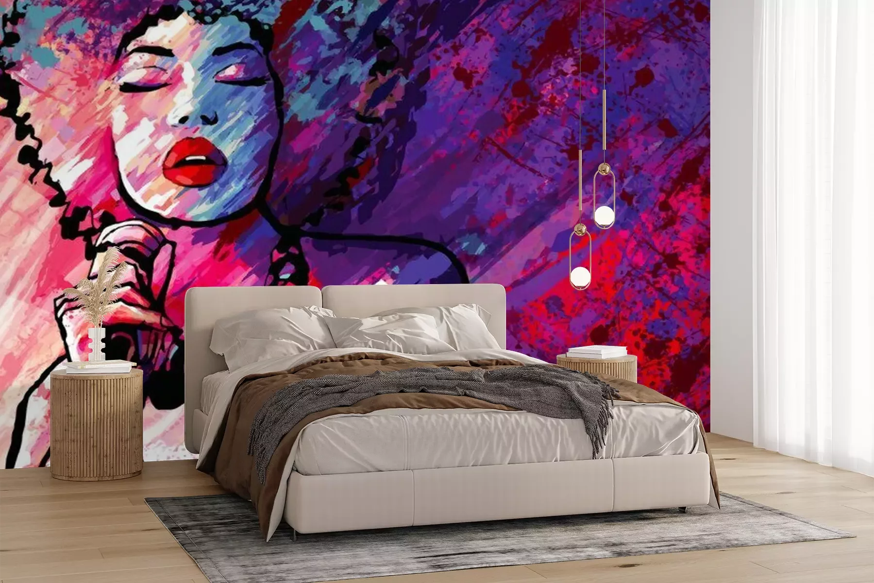 Die Fototapeten werden in Bahnen geliefert. Die Größe und die Anzahl der Bahnen, aus denen die gesamte Fototapete besteht, hängen vom gewählten Material ab. Wenn die Größe die maximale Breite des Materials überschreitet, besteht der Ausdruck aus mehreren gleich großen Bahnen.