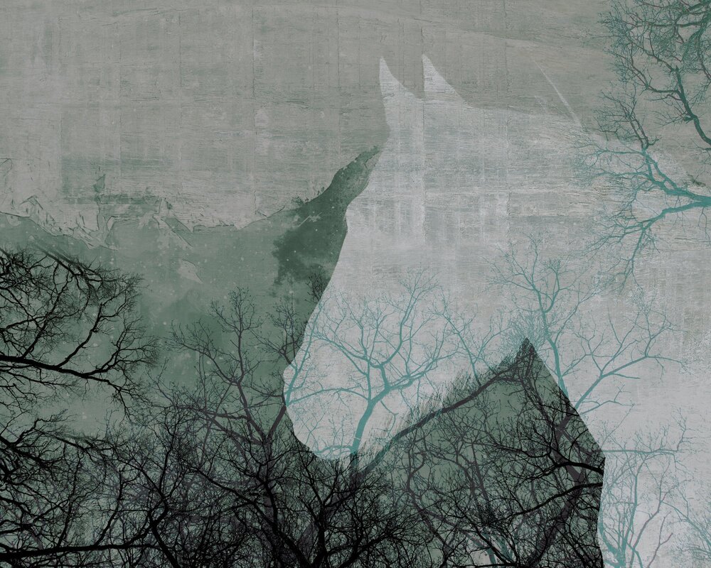 Fototapete: Abstraktes Porträt eines Pferdes zwischen Bäumen